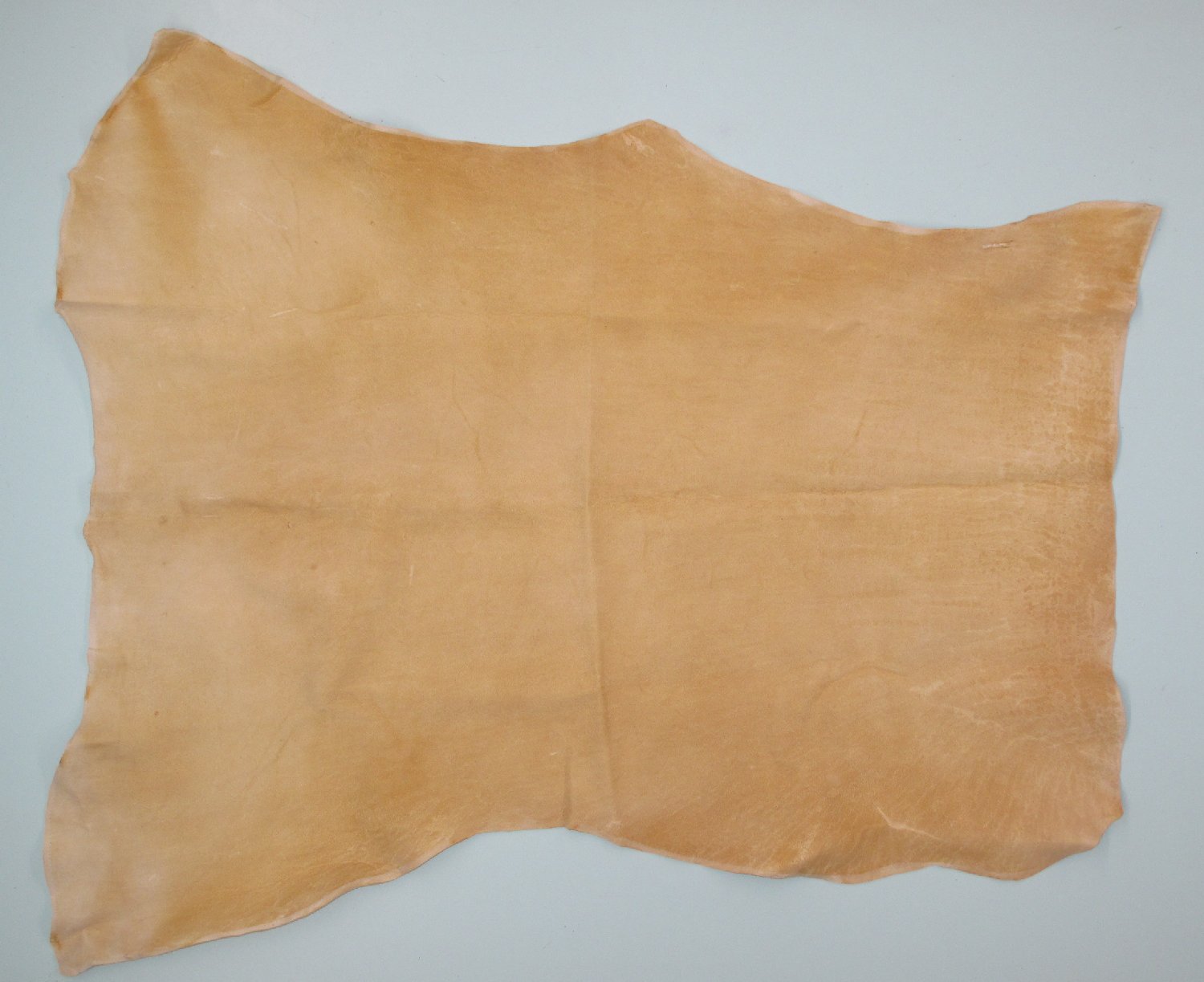Lot # 780-0259Eastern white-tail deertanned by hand, smoked. Complete hide. Extra wide. Cut off at base of neck; 36" long, ~7.25 sq. ft. Extra wide skin. #1 except ~1" professionally sewn cut near edge of left side of neck. Very, very few scattered scars. Extra nice skin $499.95 /eaBkskn Room |