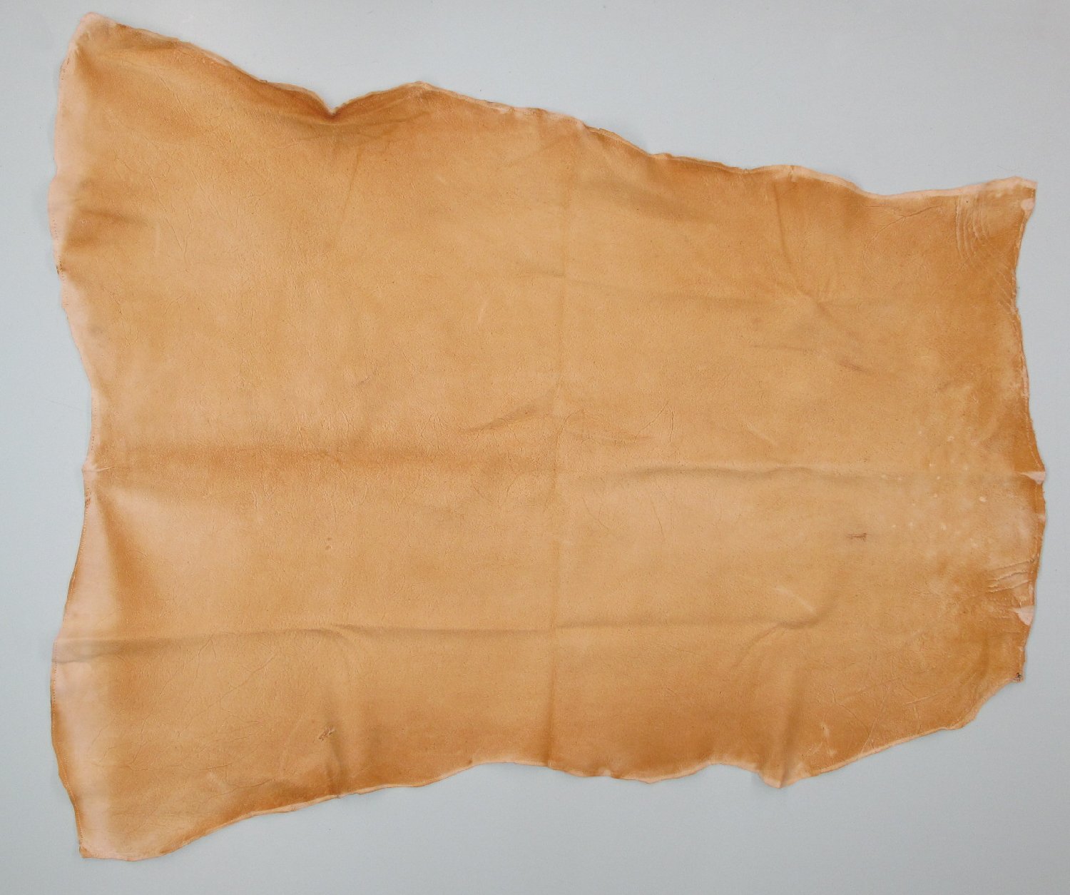 Lot # 780-0271Eastern white-tail deertanned by hand, smoked. Complete hide. Cut off at base of neck; 43" long, ~8.5 sq. ft. #1 except ~1/2" professionally sewn cut ~8" posterior of anterior edge of hide; ~3/4" professionally sewn cut just anterior of left hip, ~2.25" from outer edge of hide. Few scratches. Gorgeous hide $552.50 /eaBkskn Room |