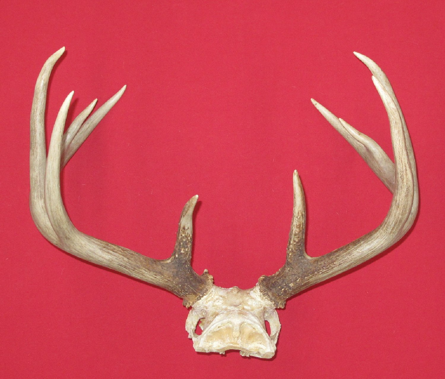 Lot # 2035-2123Points Right: 5 Points Left: 5 Greatest Width: 19.25 Greatest Height: 13.75 Width Between Tips: 10Gross BC score ~144.5. Right: Main beam 21.25; tines 6.5, 8.5, 8 ,3; beam 4.5, 4, 4, 3.5. Left: Main beam 22.75; tines 6, 8.25, 8, 3.5; bam 4.25, 3.75, 3.75, 3.5; Inside spread 17.5 brown, super heavy, matched, ~even. G4, G5 form "crab claw" configuration. #1 select quality. Gorgeous; exceptionally nice set. Tag 21395 $499.95 /eaU2N |