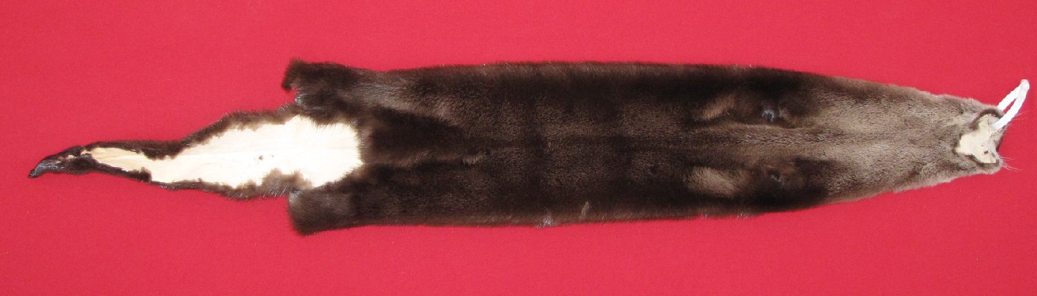Lot # 7205-2301Minnesota50" total length; extra wide skin dark color super, super, super heavy winter fur cased #1 except two XXS knife knicks just posterior of base of tail. Gorgeous select quality fur. Exceptionally nice skin. Few otters with heavier fur $250.00 /eaCFR |