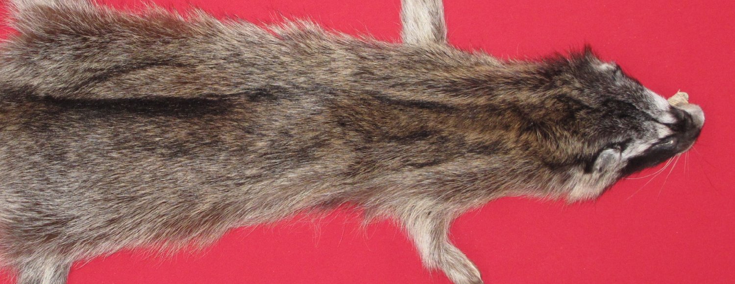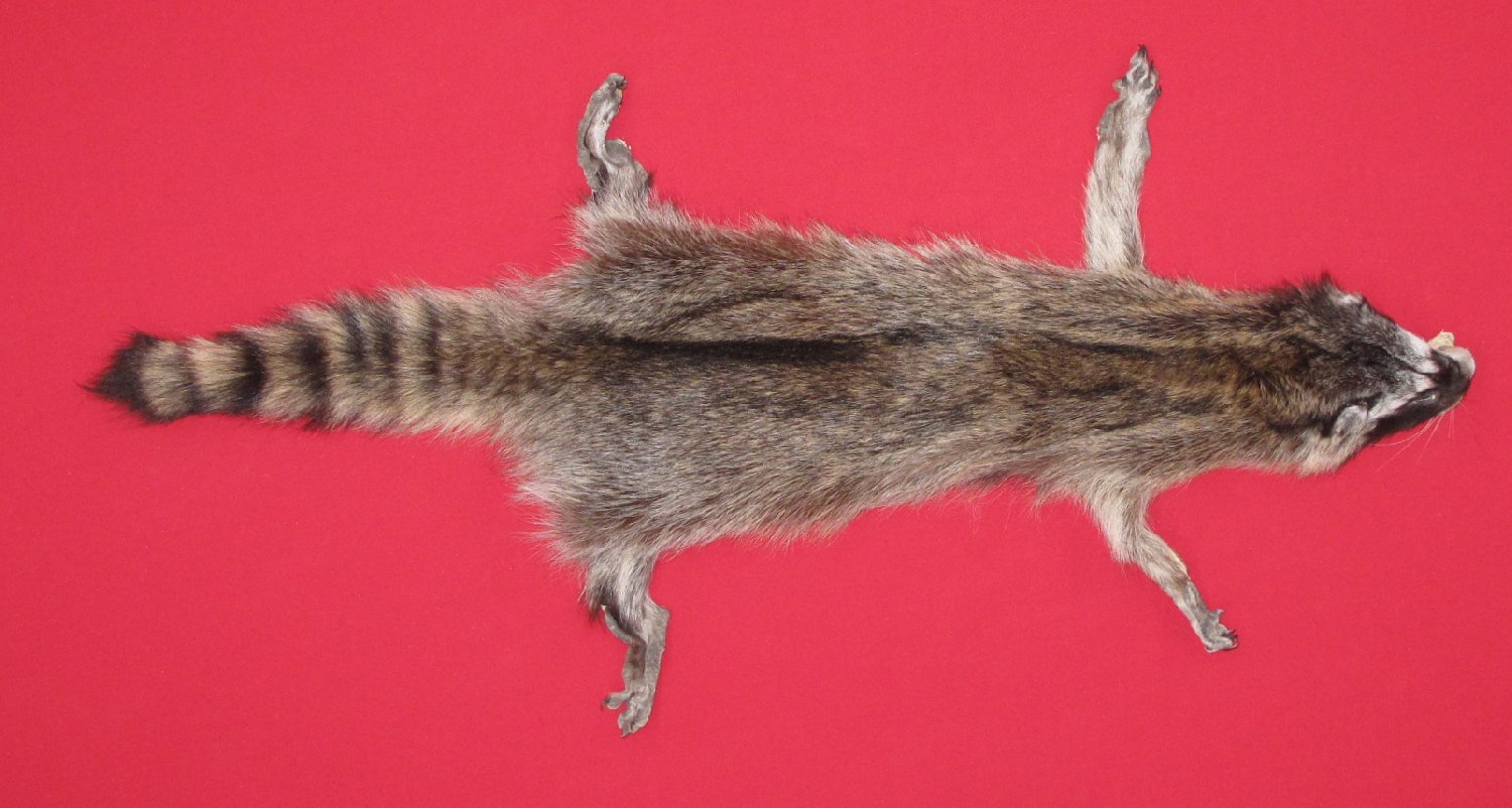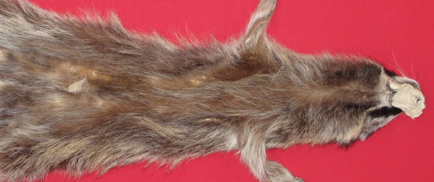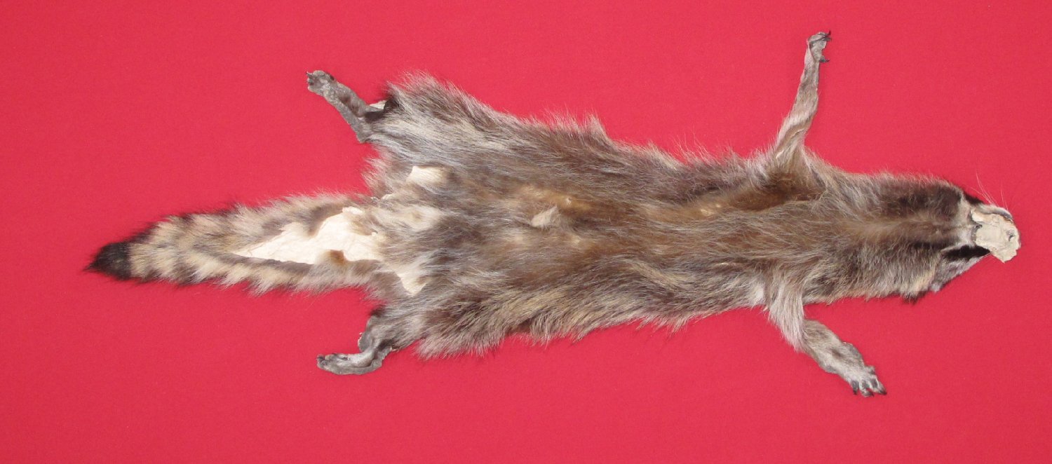 Lot # 7271-0771Idaho. Snake River subspecies. Procyon lotor excelsusXL, 28-30" long plus tail dark color super heavy winter fur on back extra heavy winter fur on neck; cased HAS FEET & CLAWS, ears turned, lips split, etc. #1 except leather very, very slightly damaged. SUITABLE FOR RUR OR LIFE-SIZE. Nice skin $167.50 /eaFR-531 |