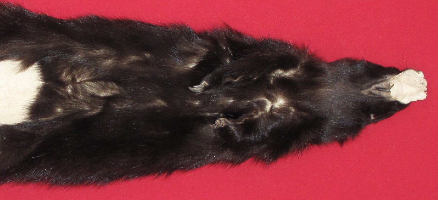 Lot # 7370-1697WesternXXXL, 24-26" long plus tail ordinary bright white stripes extra super heavy winter fur cased HAS FEET & CLAWS. #1 except leather very, very slightly damaged. Gorgeous select quality fur. Exceptionally nice. Malle, Abdomen fully furred $225.00 /eaFR-535 |