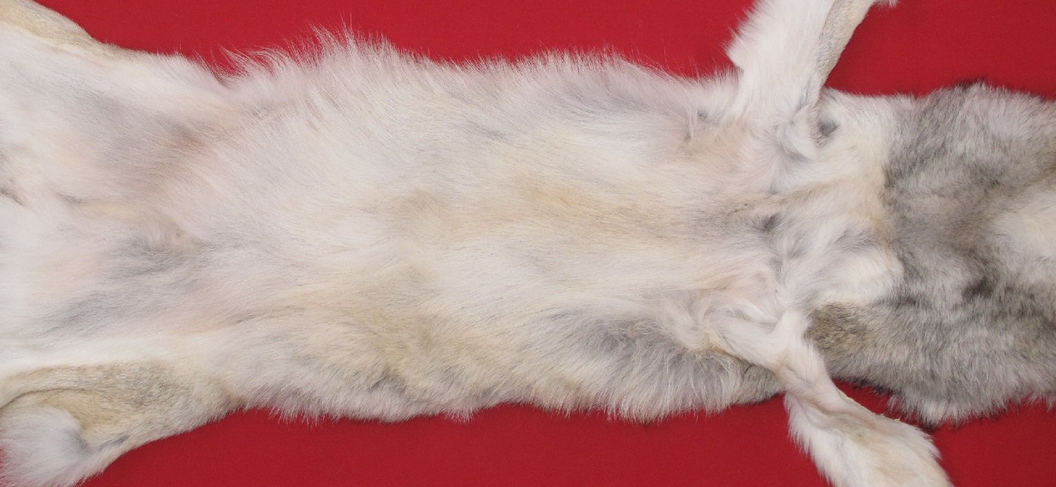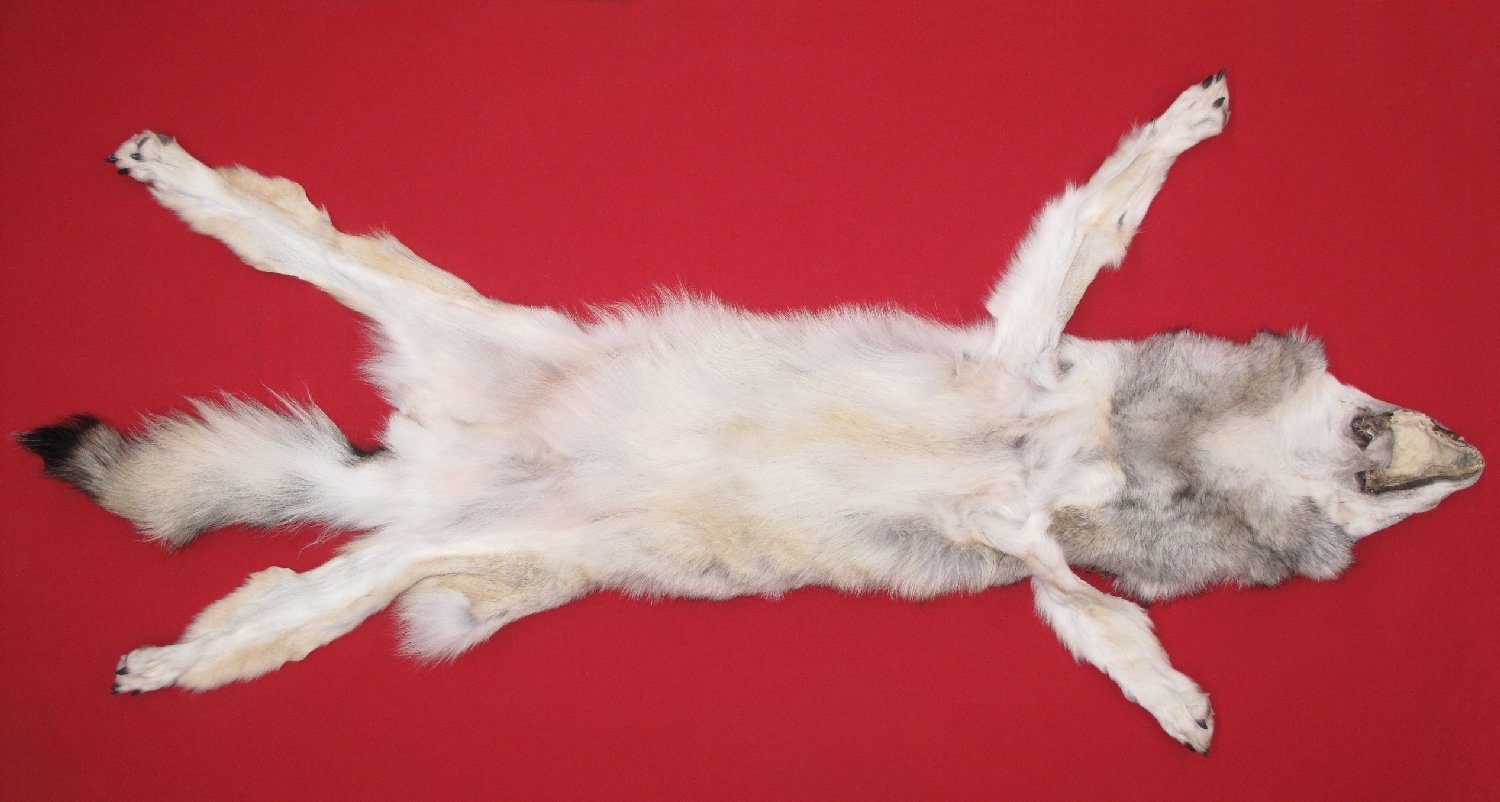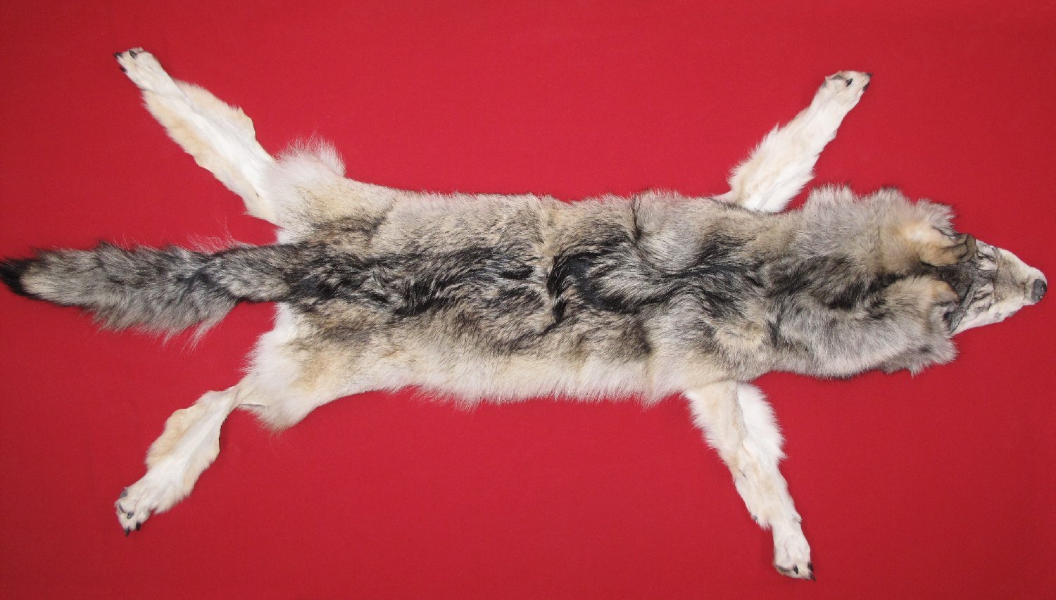 Lot # 7481-0672Canada; Western Quebec76" total length; NTB = 55 extra, extra light grayish brown color super soft, extra super heavy winter fur cased HAS FEET & CLAWS, ears turned, lips split, etc. #1 except some repairable cuts in inner ; ~1.5 x 1/2" scar on right front legskin. SUITABLE FOR RUG OR LIFE-SIZE. Gorgeous select quality fur. Exceptionally nice skin. Beautiful $675.00 /ea |