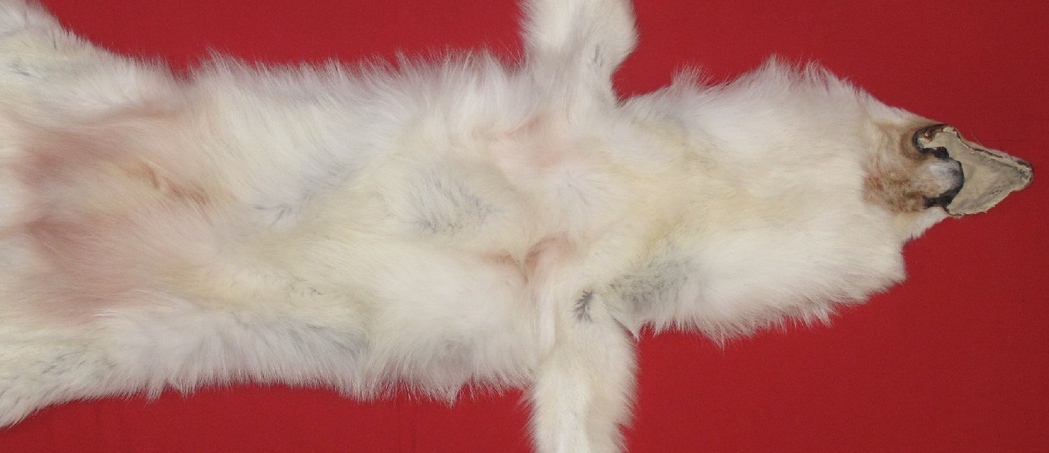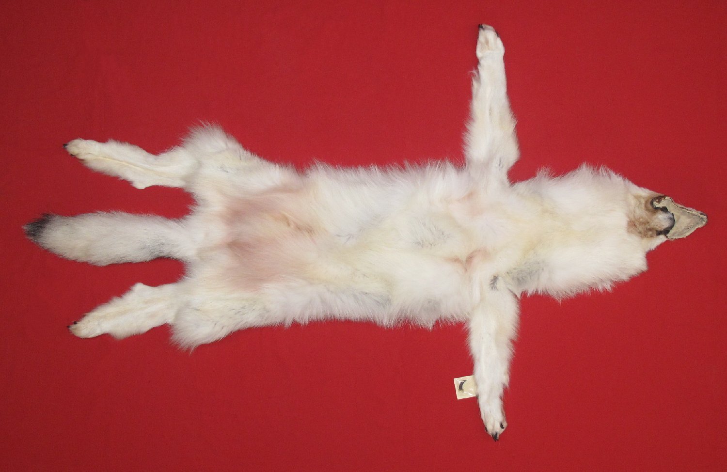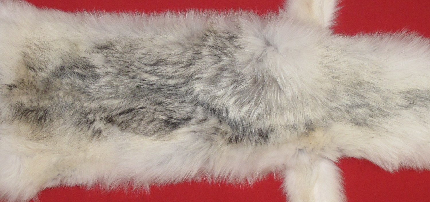 Lot # 7481-0678Canadian Arctic79" total length, NTB = 58; extra wide #1 except ~1.5" easily repairable cut on out white with some black guard hairs gorgeous pure white belly; cased HAS FEET & CLAWS, ears turned, lips split, etc. #1 except ~1.5" easily repairable cut on outer right edge just posterior of right shoulder; easily repairable ~1" cut in mid right back; ~1.5" easily repairable cut in upper right rear legskin. Tip of one right rear claw broken off (replacement provided). SUITABLE FOR RUG OR LIFE-SIZE. Exceptionally nice skin. Beautiful. This is one the top 4 XX Pale Arctic wolves sold at the Canadian auctions last season. Just got it back from the tannery. $2999.95 /ea |