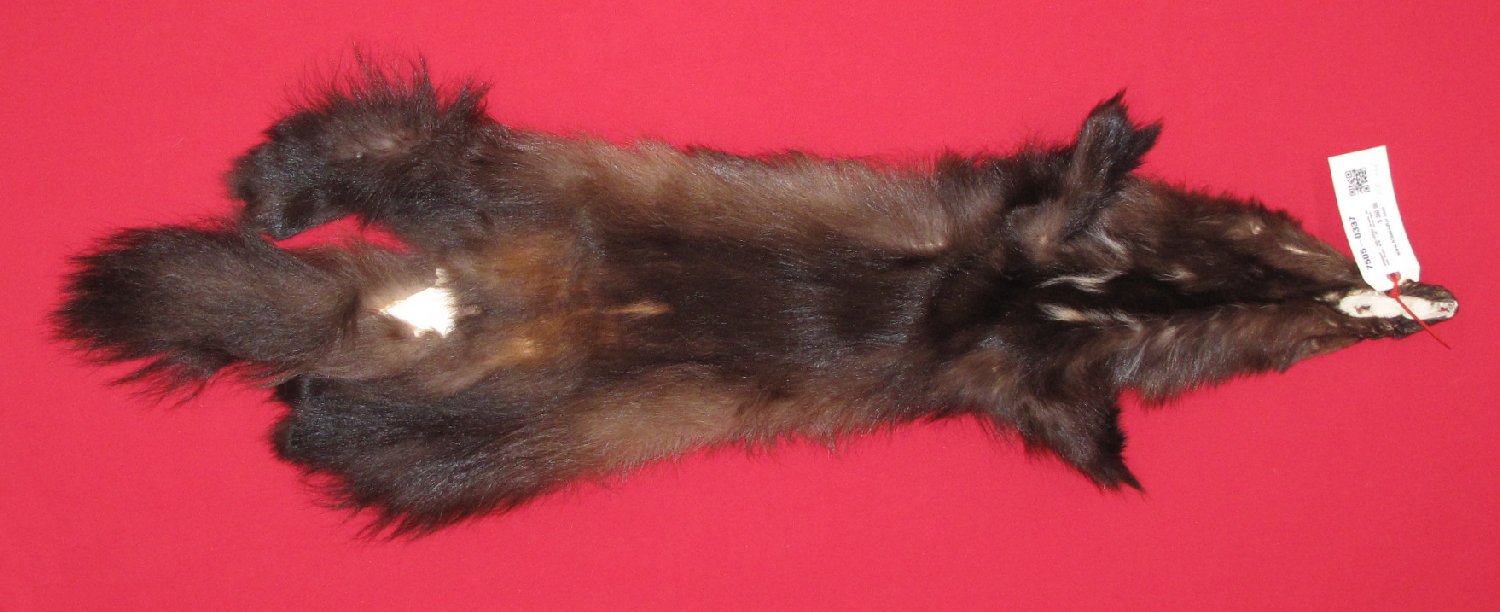 Lot # 7505-0337Canada48" total length; NTB = 35" extra dark color extra super heavy winter fur cased NO FEET. ~2.25 x up to 1" hole between ears (appears to be scar that has broken open); pea size hole in back of neck; ~3/4" cut in mid right flank; ~1" cut in left side of neck; ~3/4" cut in base of left front legskin; ~3/8" cut just posterior of right front legskin`1.25" cut in right rear legskin. Gorgeous select quality fur. $350.00 /eaFR-226 |