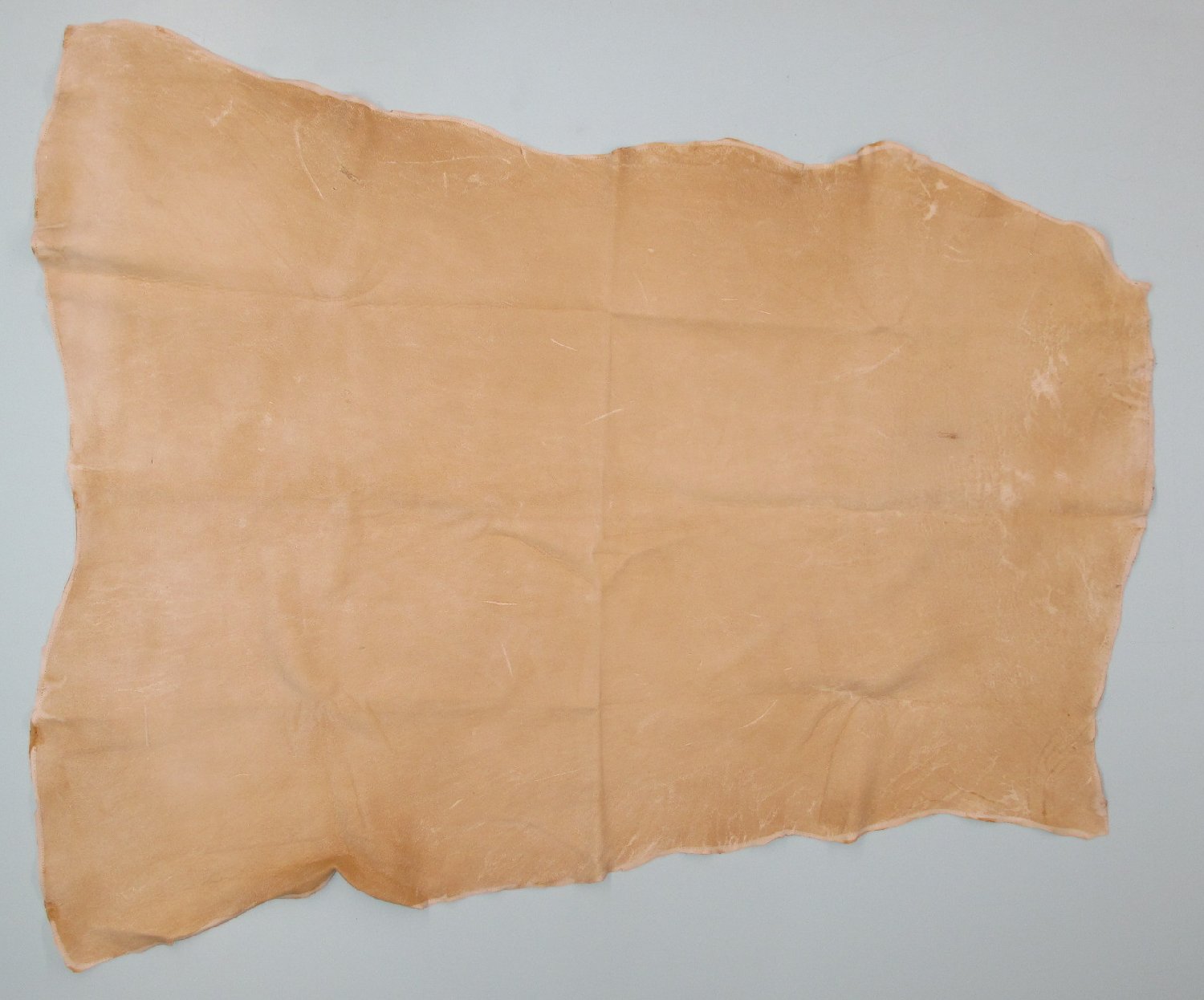 Lot # 780-0271Eastern white-tail deertanned by hand, smoked. Complete hide. Cut off at base of neck; 43" long, ~8.5 sq. ft. #1 except ~1/2" professionally sewn cut ~8" posterior of anterior edge of hide; ~3/4" professionally sewn cut just anterior of left hip, ~2.25" from outer edge of hide. Few scratches. Gorgeous hide $552.50 /eaBkskn Room |