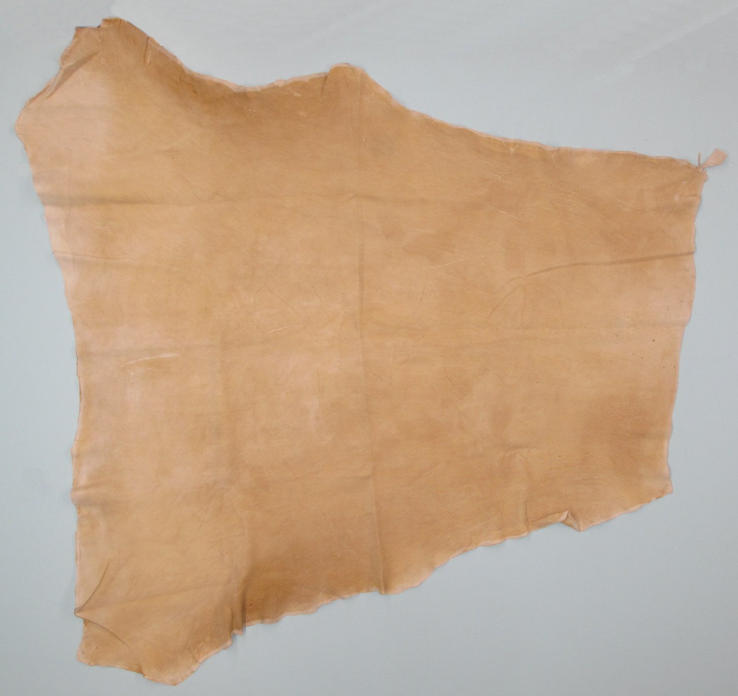 Lot # 780-0276Eastern white-tail deertanned by hand, smoked. Complete hide. Cut off at base of neck; 42" long, extra wide. 8.5 sq. ft. #1 except some spotting in anterior 8" of hide. Very few scars. Posterior ~7.25 sq. ft. of hide. #1 super select quality. Nice skin $545.00 /eaBkskn Room |