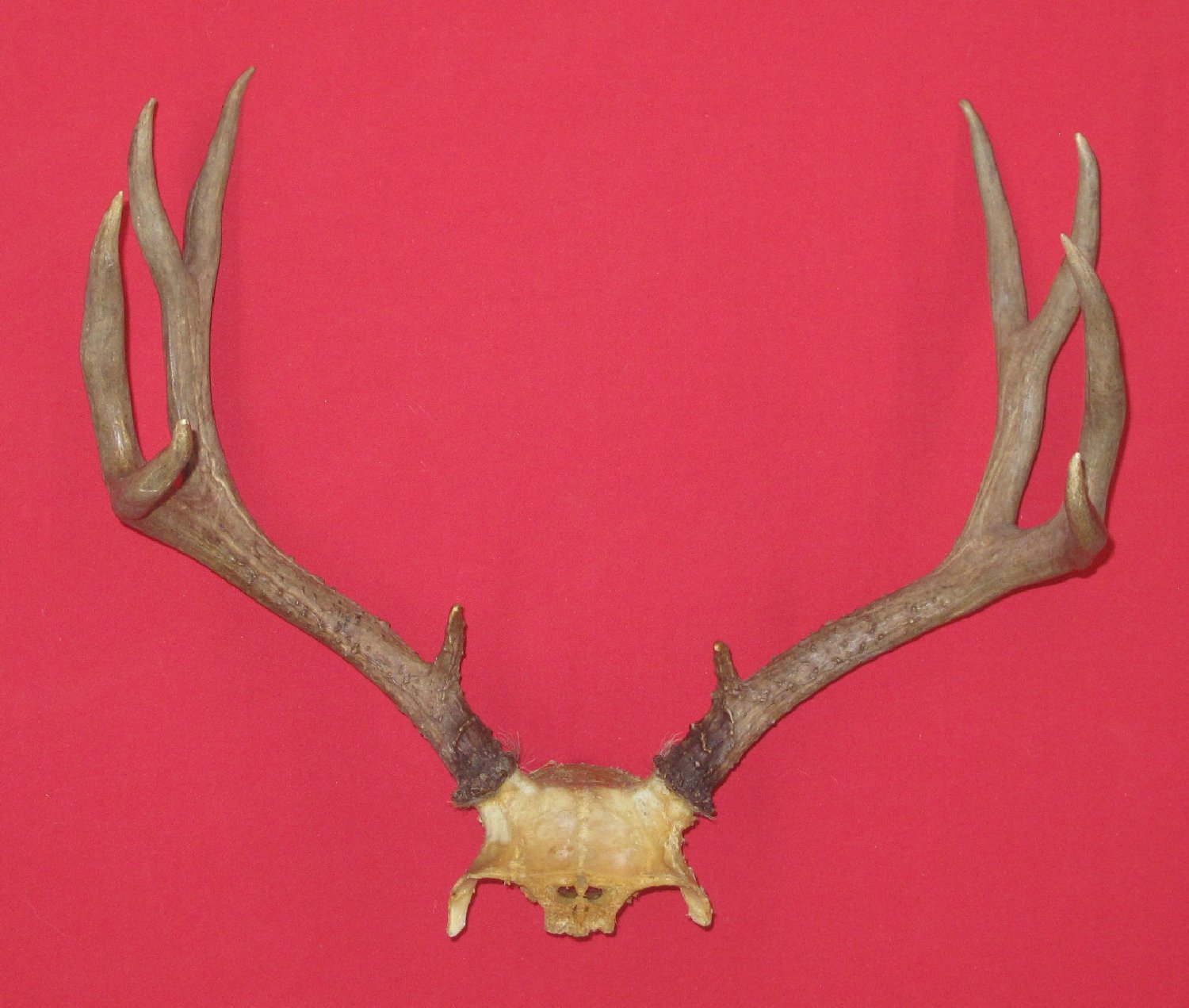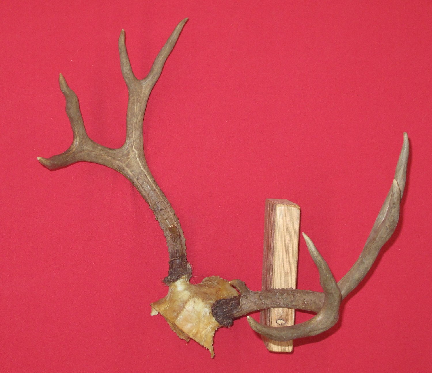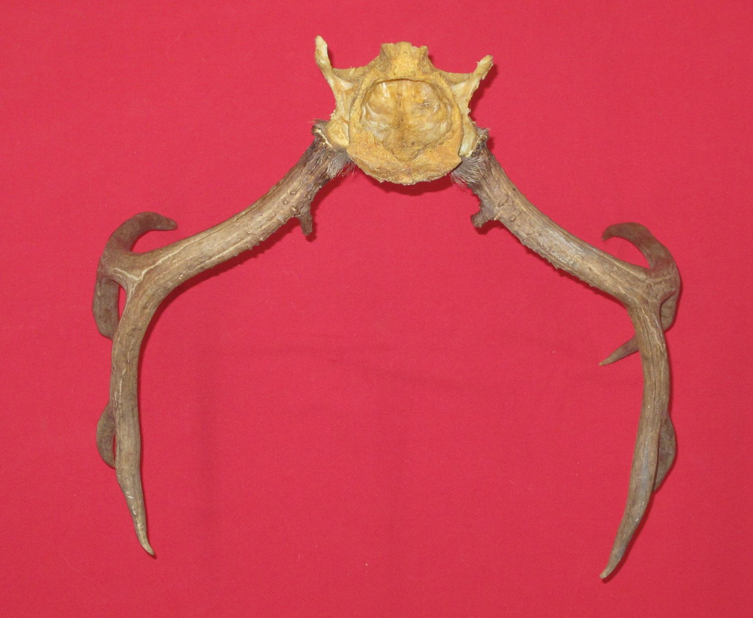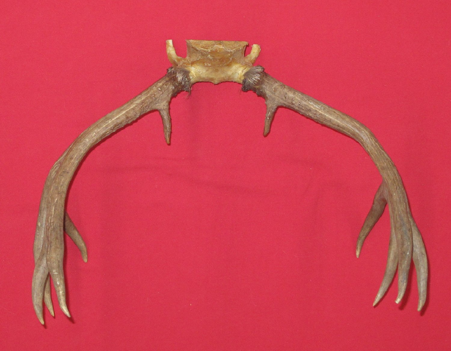 Lot # 2030-0508Points Right: 5 Points Left: 5 Greatest Width: 20 Greatest Height: 15.5 Width Between Tips: 15.75Gross BC score ~131.25. Right: Length of main beam 18; tines 2.5, 9.75,4.75, 6.5; beam circum. 3.75, 3.5, 3.5,3. Left: Length of main beam 18; tines 3.5, 10.25, 5.5, 7; beam circum. 4, 3.75, 3.25, 3. Inside spread 17.75 has brow tines. #1 select quality. Extra dark brown, extra heavy. Matched, even. Beautiful set $85.00 /eaU5S |