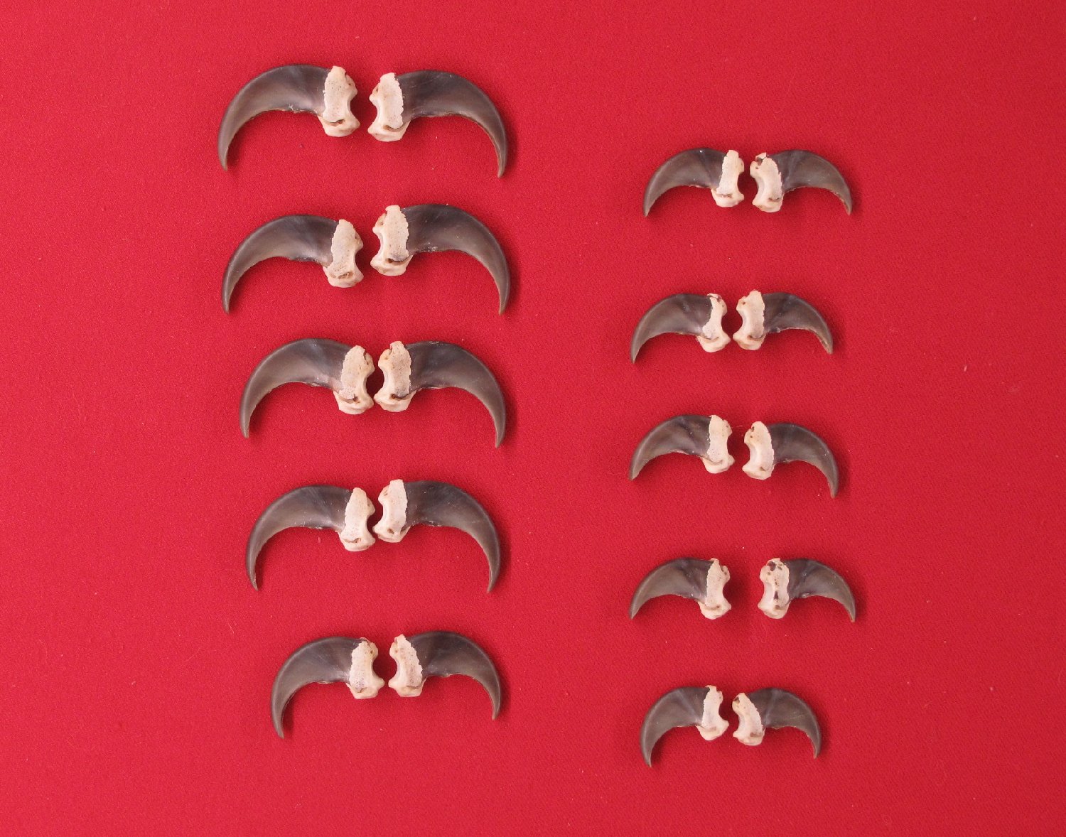 Lot # 2736-5025XLlargest claws 2.5-2.75" long black color from same animal, hair removed, dried 1 set = 20 claws #1 quality $275.00 /eaF-30 |