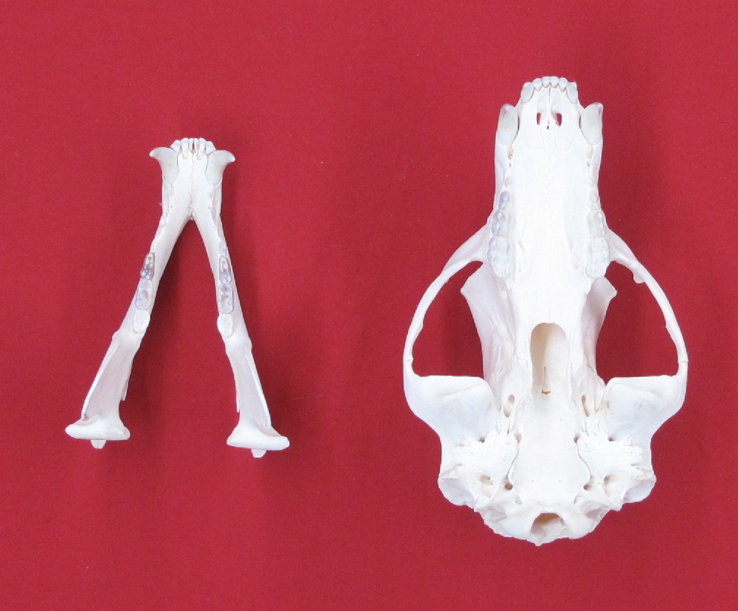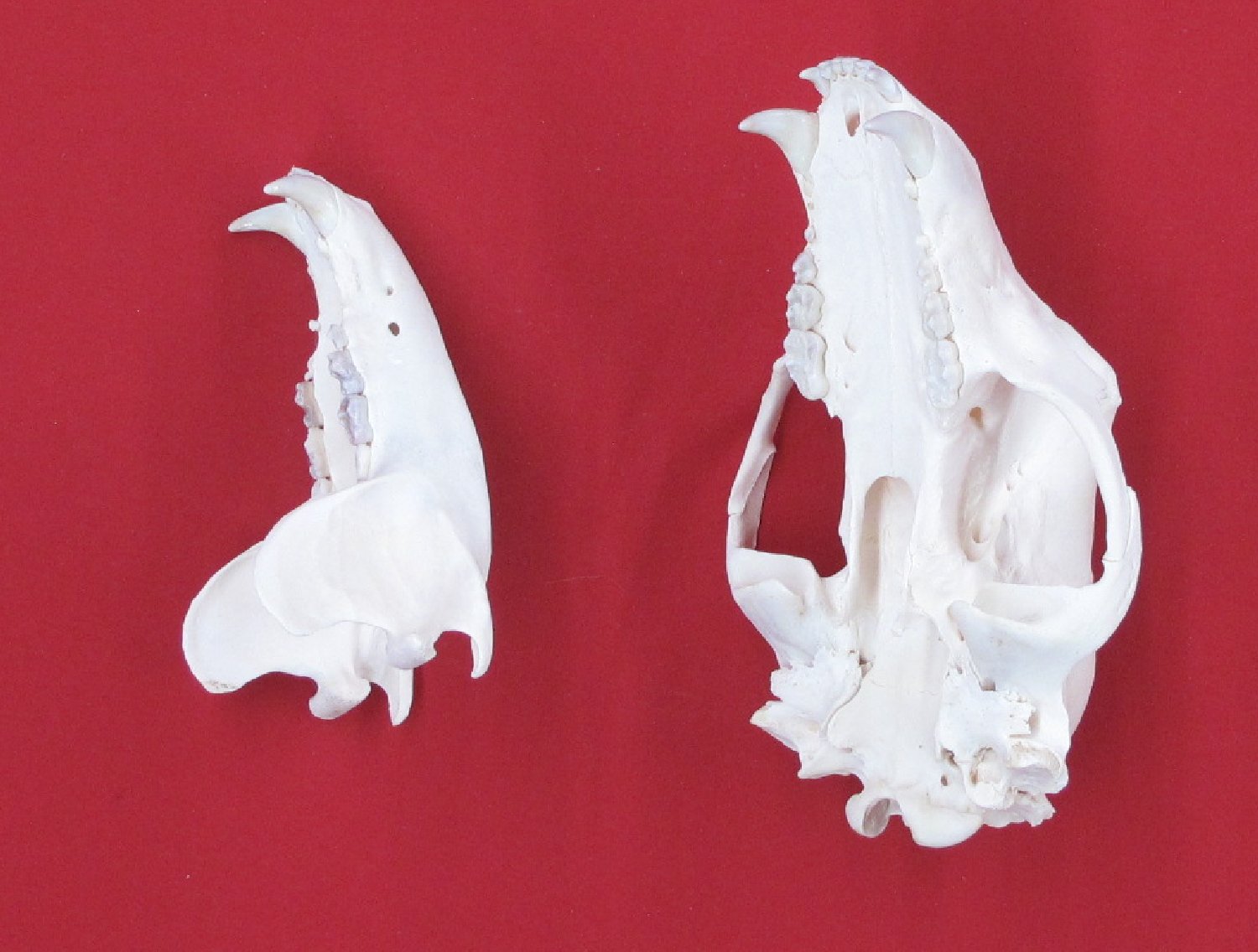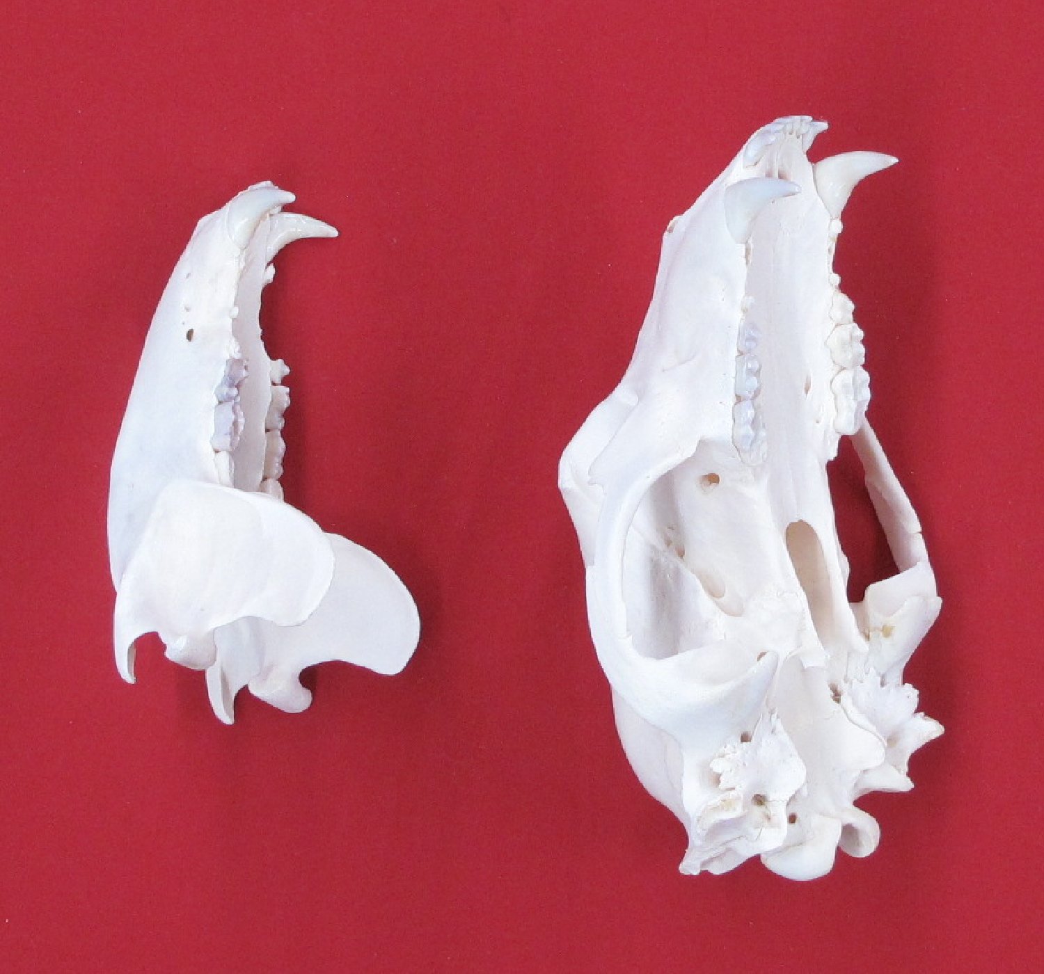 Lot # 5113-9733XXL11-11.5" long professionally BEETLE CLEANED upper right P1, P2, upper left P2; lower left P1, P2, lower right P2 removed by Fish and Game for aging. #1 except small chip off back of upper left canine (cannot be seen from front. Huge skull $325.00 /eaF-27 |