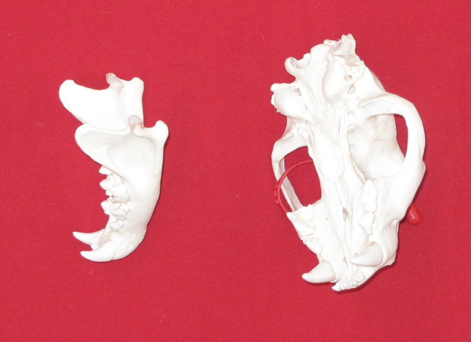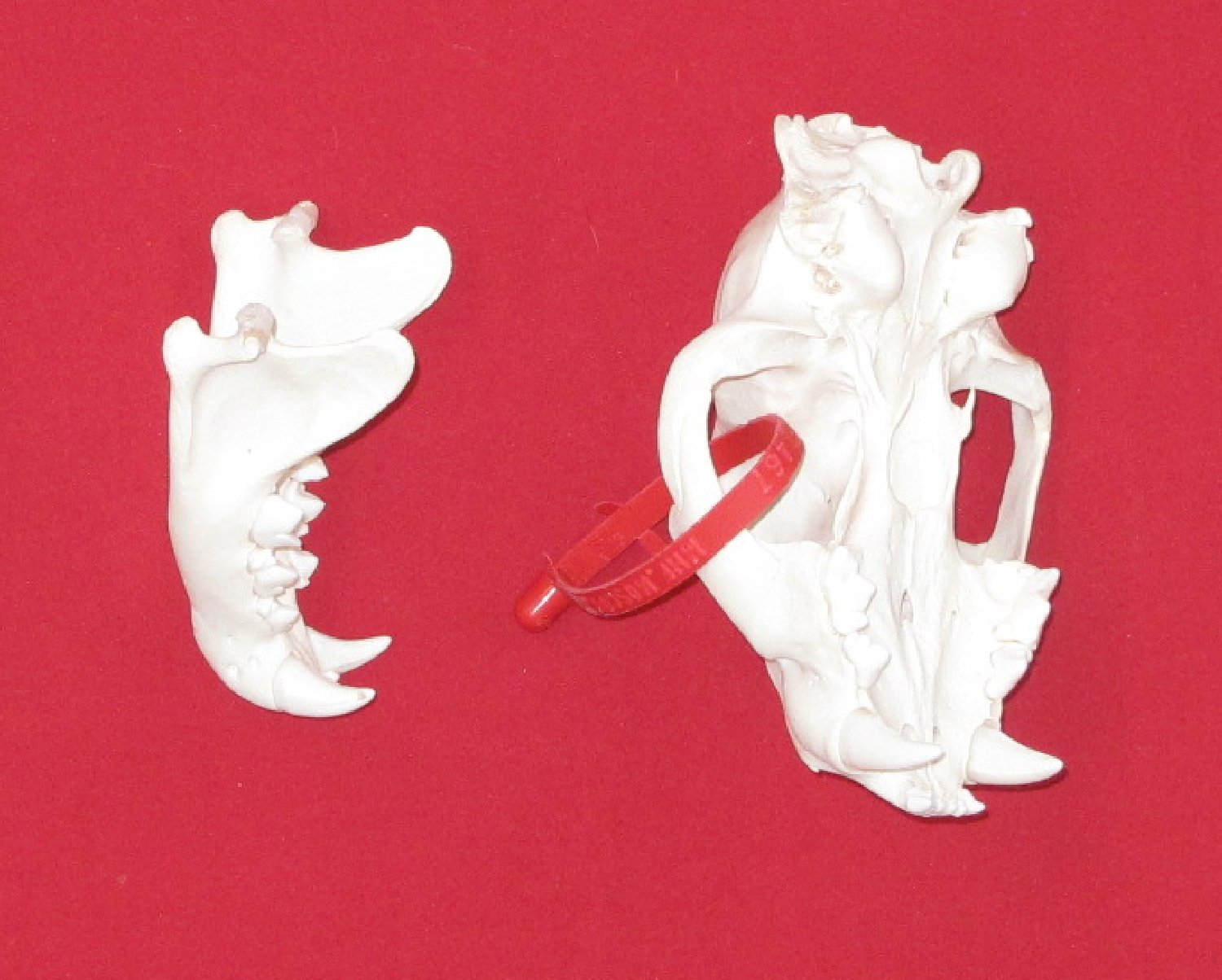 Lot # 5141-9821XL7.25-7.5" long professionally BEETLE CLEANED young male upper right, upper left anterior premolars (P-1) removed for Fish and Game Department for aging. #1 select quality. Nice skull $399.95 /eaF-7 |