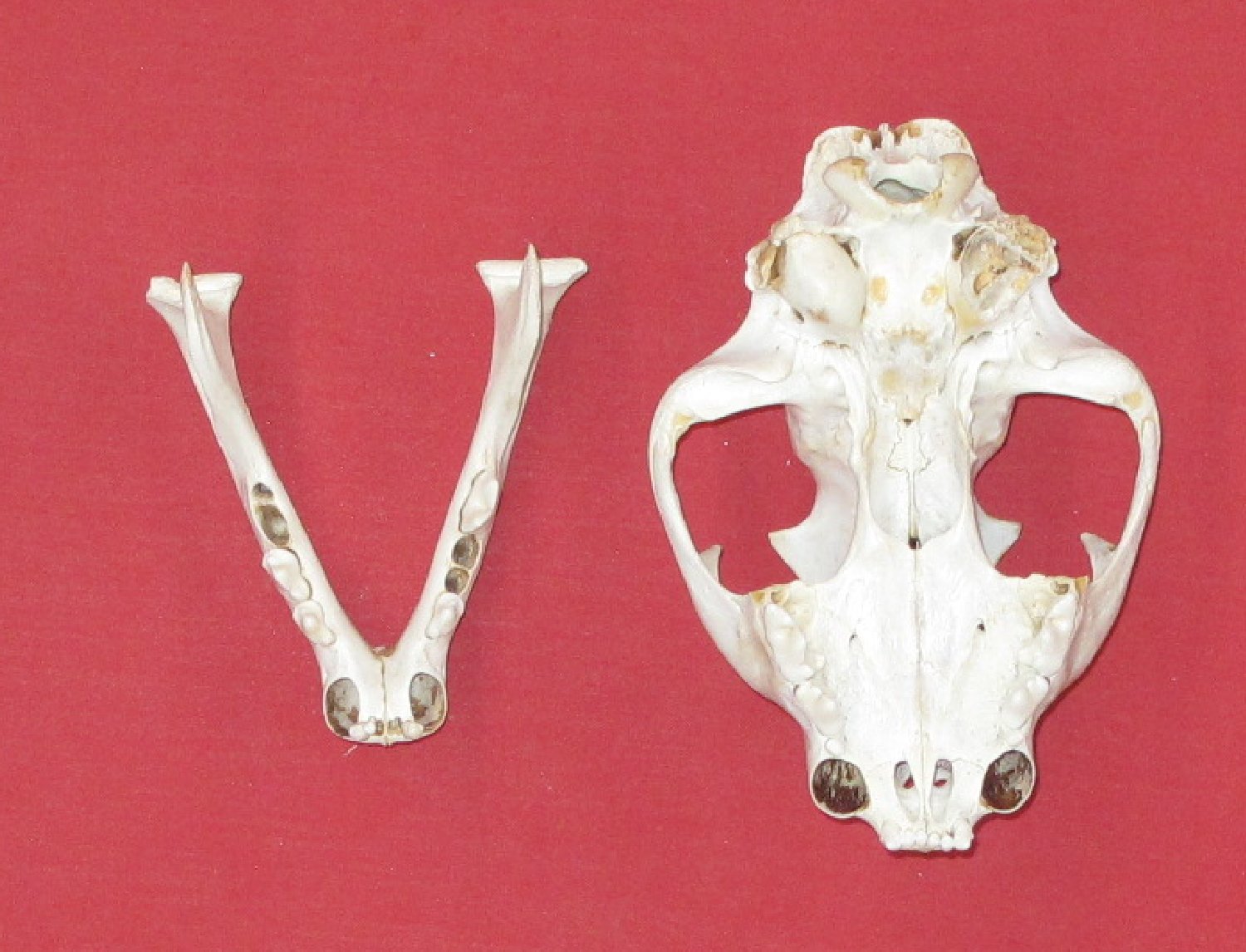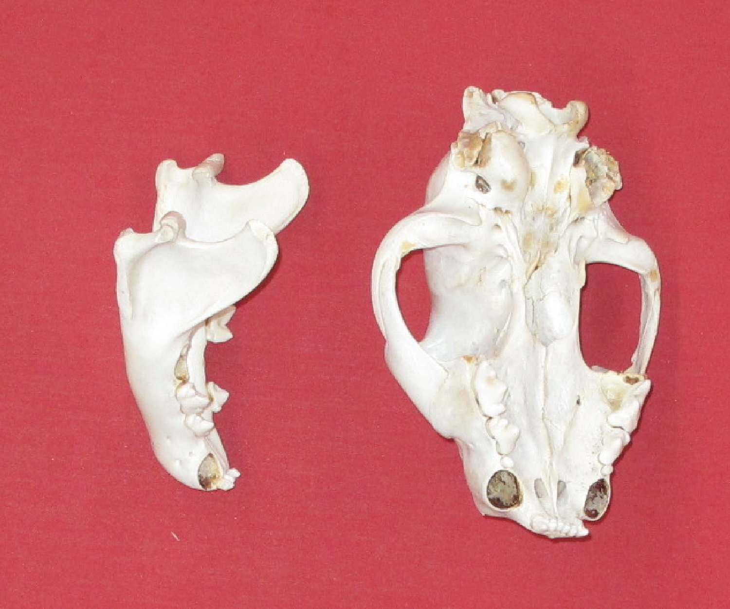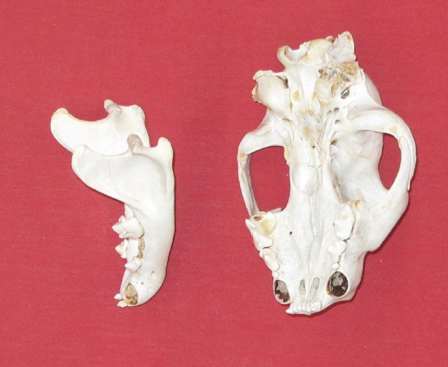 Lot # 5141-9882XL7.25-7.5" long commercially cleaned canines have been removed; about half of other teeth removed. Right bullae broken. Good for xerascaping, art work, taxidermy scenes, etrc. $99.95 /eaF-7 Quantity Available:
