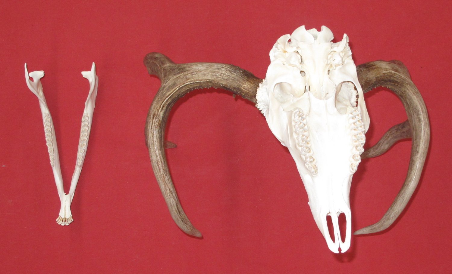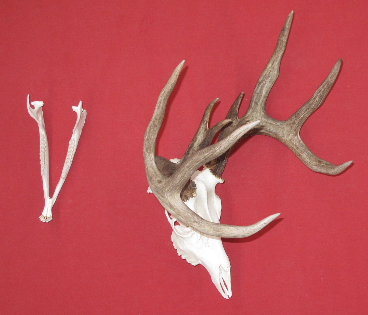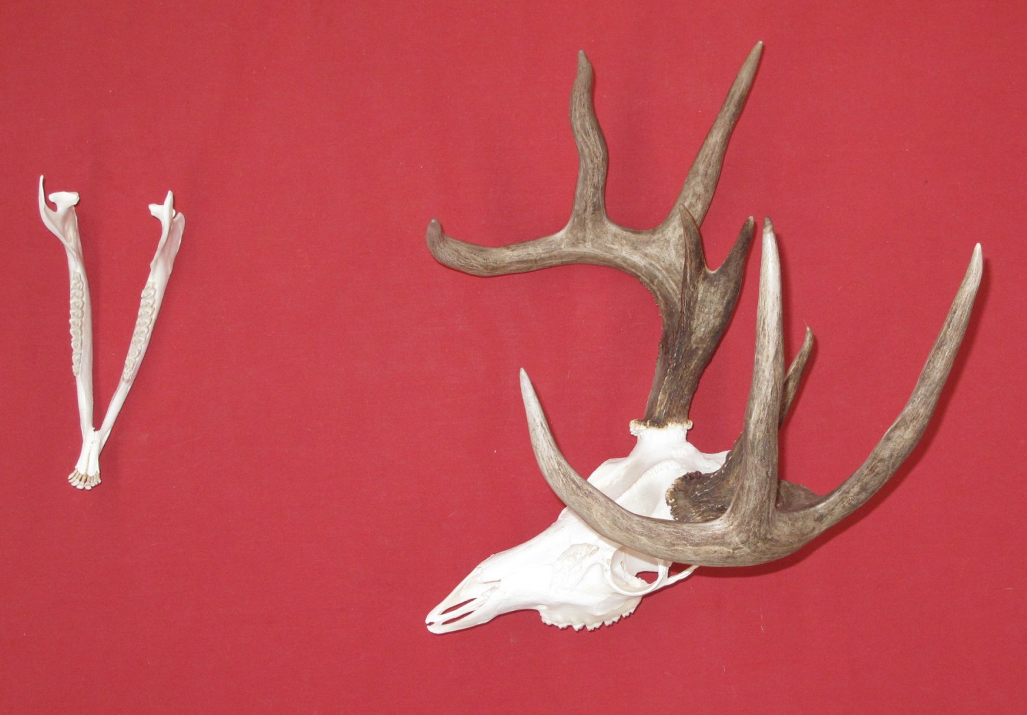 Lot # 5152-0400Buck, complete skullprofessionally cleaned XXL 11.5-12" long 5x5 antlers small fork on left brow tine less than 1", so technically a 5x4. Gross BC score ~128.25. Right: Main beam 17.5; tilnes 6.5, 7.75, 8.25; beam 4.5, 4, 4, 2.5. Fork off G1 2.75". Left: Main beam 18; tines 5.25, 9.5, 9; beam 4.5, 4.25, 4.25, 2.5; inside spread 13.25. Extra super heavy; hard fresh brown. Matched 5x4. #1 select quality. Beautiful skull. Exceptionally nice. Tag 21081 $350.00 /eaF-12 Quantity Available: