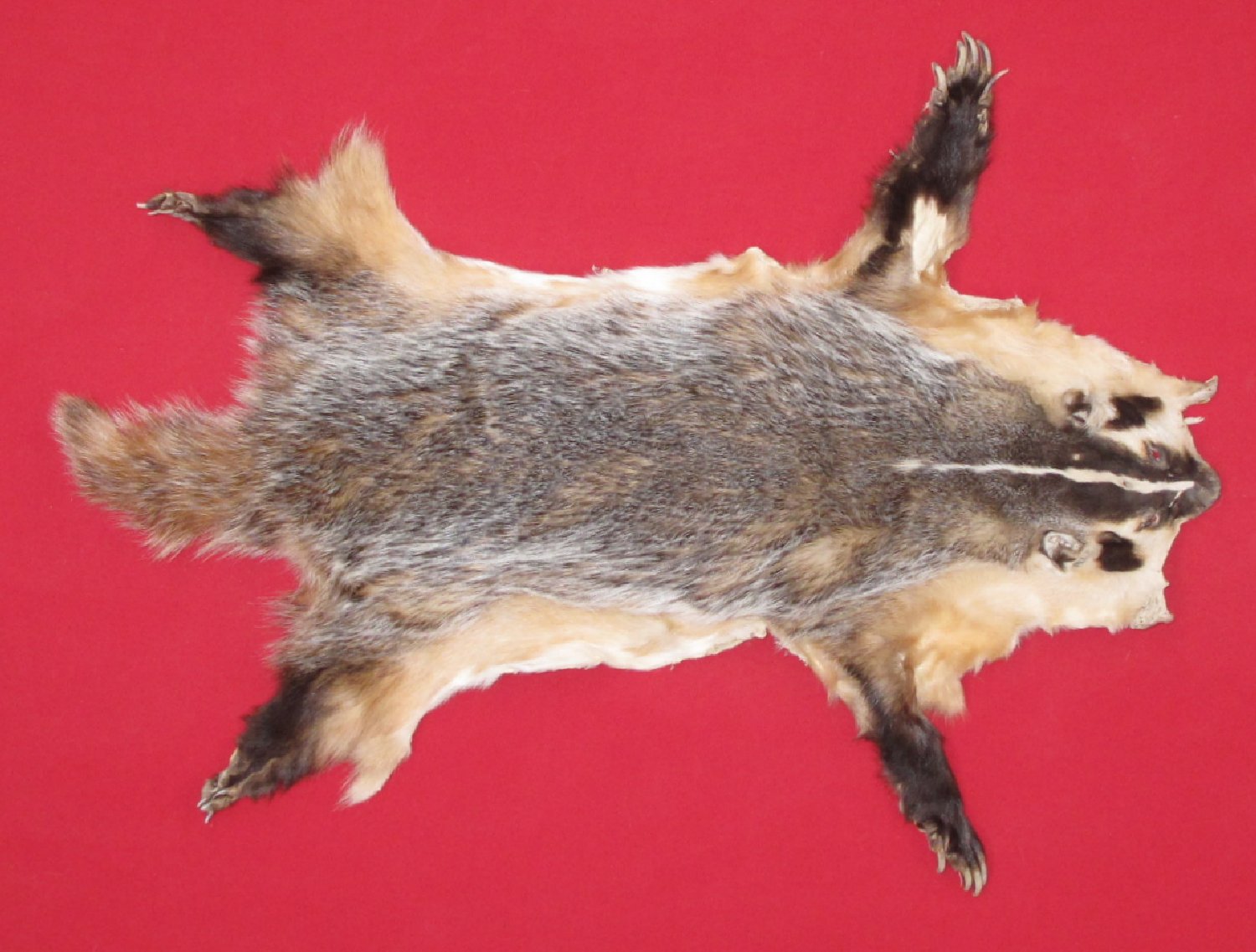 Lot # 6085-1588Northern Great Basin; Eastern Oregon sage brush countryXL, 28-30" long plus tail mediium brown with silver tipped guard hairs extra heavy winter fur abdominal cut HAS FEET & CLAWS. #1 except leather very, very slightly damaged; ~1 x 2.5" bare spot on upper left legskin. Nice looking hide $125.00 /eaFR-543 |