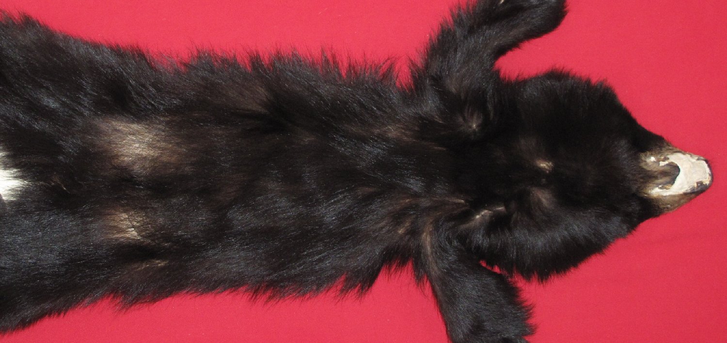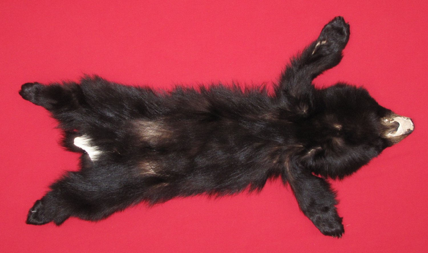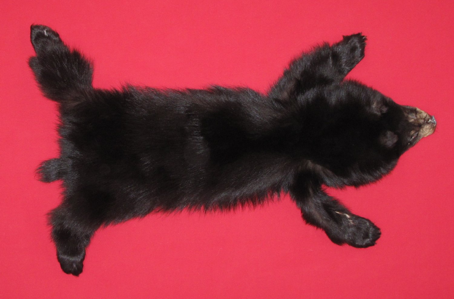 Lot # 6105-1036Canada38.5" total length; NTB = 34.5" black; brown snout super, super, super thick spring fur to ~3.5" long CASED HAS FEET & CLAWS, ears turned, lips split, etc. #1 except ~1 x 1.5" bare area on right front foot; ~3/4" and 3/8" easily repairable cuts in left rear legskin; ~1/4" easily repairable cut posterior of ~left corner of mouth; hunter sewn 1" cut on left side of posterior neck, ~1.5 & 1" cuts in right front legskin. SUITABLE FOR RUG OR LIFE-SIZE. Exceptionally nice fur on this bear. Beautiful skin. Hard to find bears this small. Canadian auctions might offer 6-8/thousand skins. $699.95 /eaFR-241 |