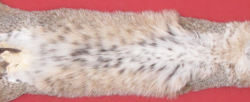 Lot # 6205-1252Wisconsin28" long; no tail light silvery brown color; ordinary spotting white, spotted belly extra super heavy winter fur; cased head missing from eyes forward. ~2" longitudinal tear just to left of base of tail; ~1.25" cut in left rear legskin. Gorgeous select quality fur. $99.95 /eaFR-244 Quantity Available: