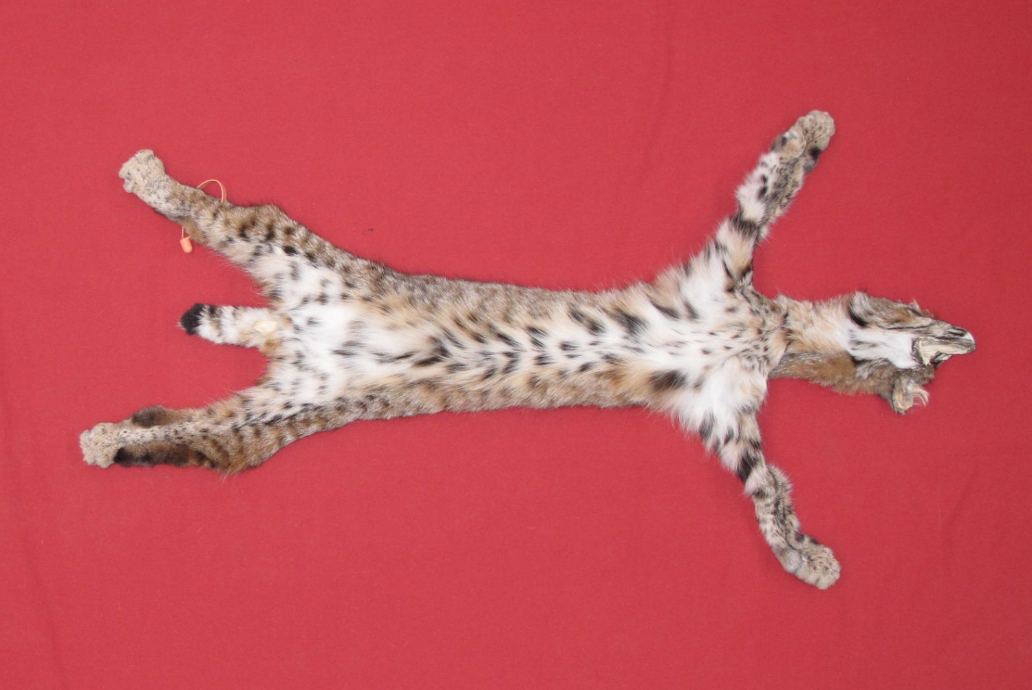Lot # 6207-0269Western Oregon Cascade Mountains30" long plus tail dark reddish brown; ordinary spotting white spotted belly super heavy winter fur; cased HAS FEET & CLAWS, ears turned, lips split, etc. #1 except leather very, very slightly damaged. SUITABLE FOR RUG OR LIFE-SIZE. Gorgeous select quality fur $350.00 /eaFR-536 Quantity Available: