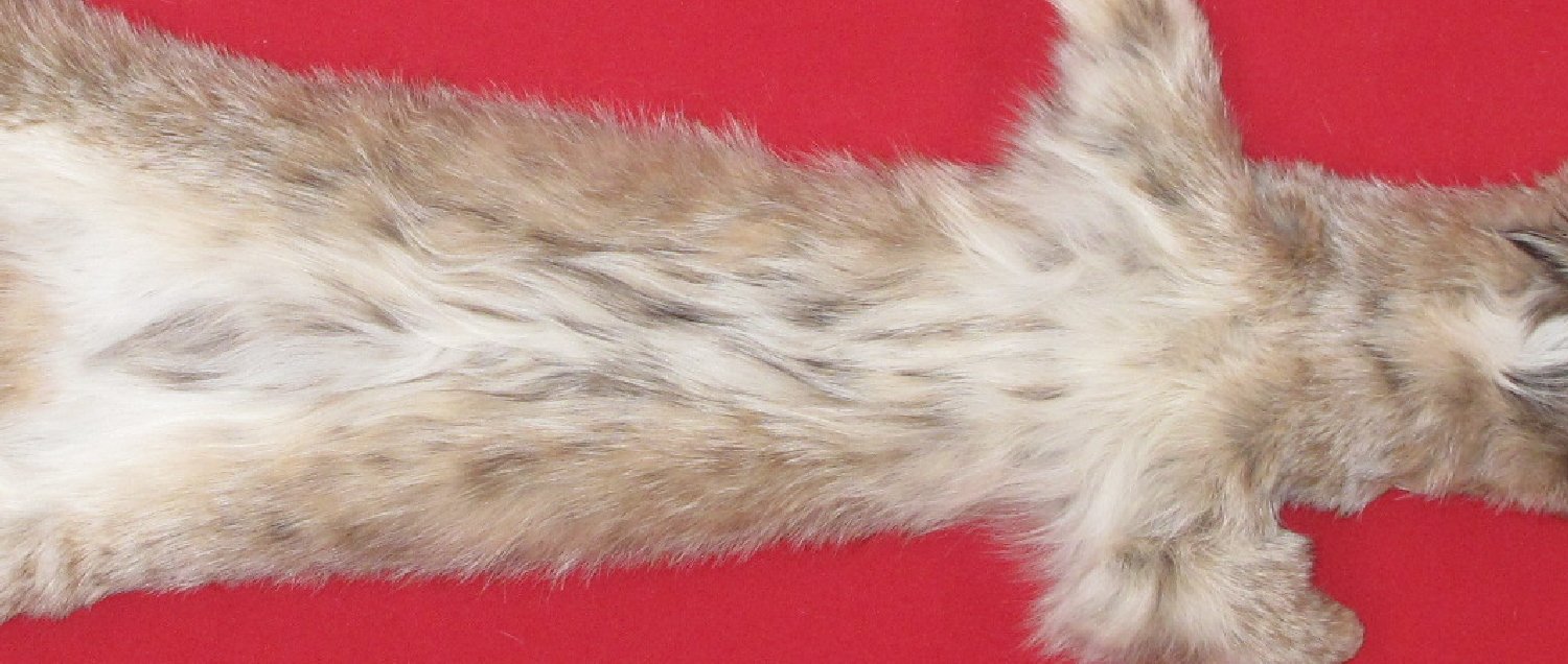 Lot # 6210-0443Canada24" long plus tail medium brown color; nice "warm" colors super heavy early winter fur #1 except leather very, very, very slightly damaged. White spotted belly. Gorgeous select quality fur $112.50 /eaFR-512 |