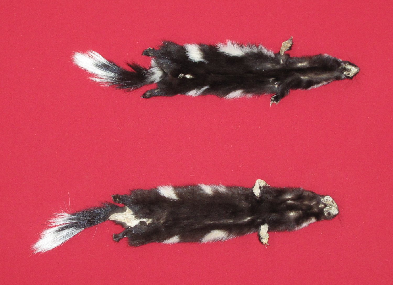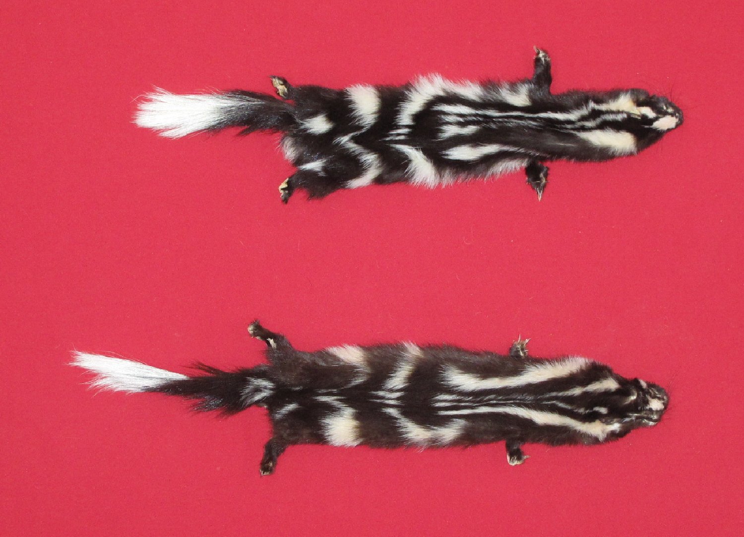 Lot # 6320-0284Western12-13" long plus tail ordinary color super, super heavy winter fur cased HAS FEET & CLAWS. #1 except leather very slightly damaged. Gorgeous select quality fur. Beautiful skins $150.00 /eaFR-411 |