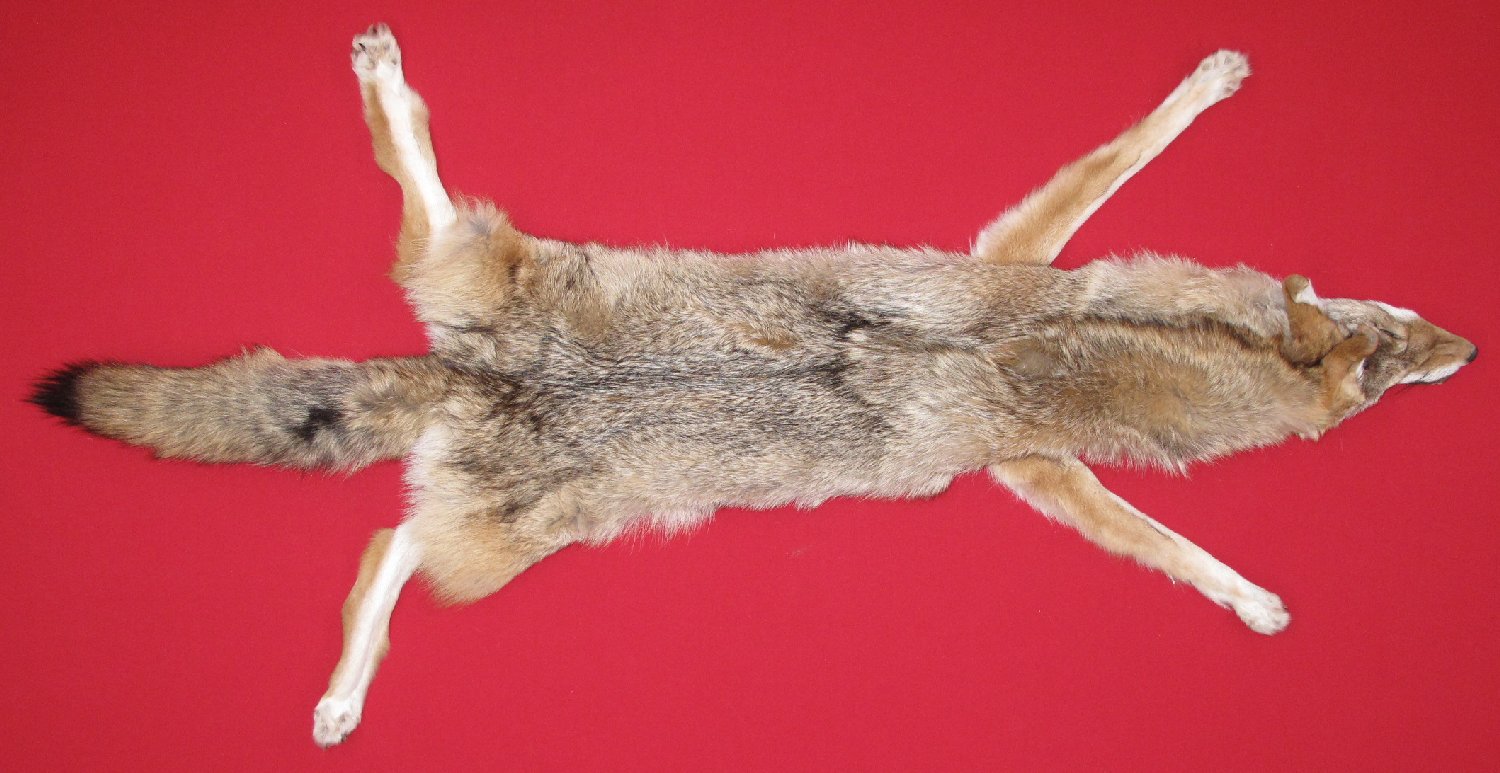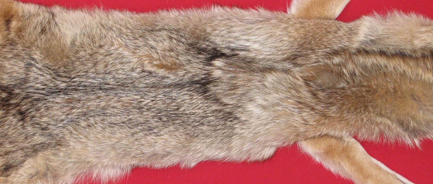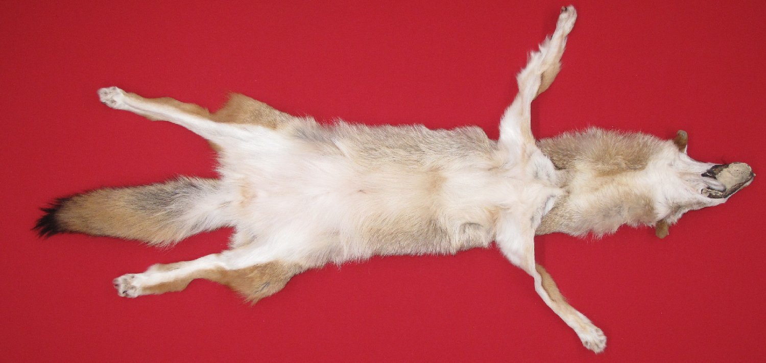 Lot # 6350-4161Northern WisconsinXXXXL", 44-46" long plus tail medium light brown color; gorgeous white belly super, super heavy winter fur cased HAS FEET & CLAWS, ears turned, lips split, etc. #1 except ~2 x up to 3/4" longitudinal bare area between shoulders; ; leather very, very, very slightly damaged. Gorgeous select quality fur. Could be use for life-size by competent taxidermist who can cut out bare spot and sew up incision. Beautiful big skin $137.50 /eaFR-231 |