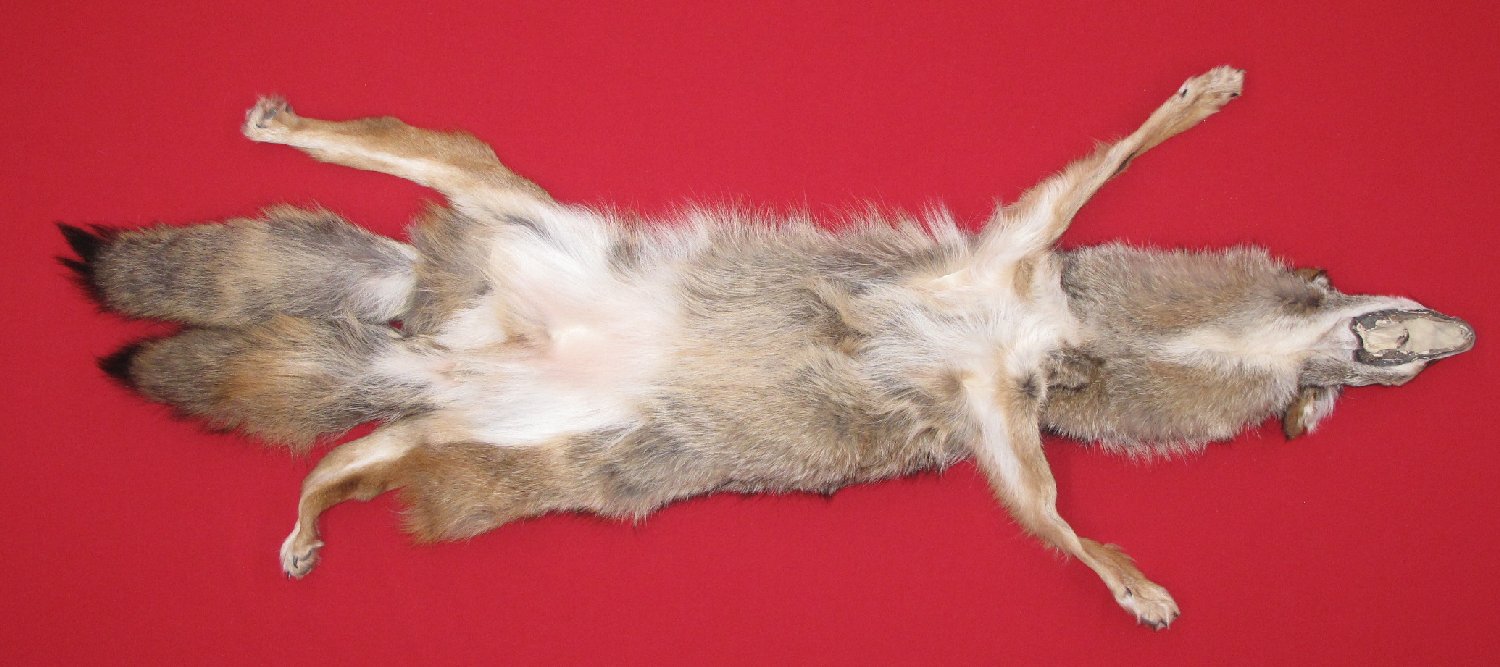 Lot # 6352-1223Northern WisconsinXXL,40-42" long plus tail; extra wide skin brown color super, super heavy winter fur cased HAS FEET & CLAWS, ears turned, lips split, etc. #1 except leather very, very slightly damaged. Tail slightly weak, replacement provided. SUITABLE FOR RUG OR LIFE-SIZE. Gorgeous select quality fur. Beautiful skin, called "brush wolves" by locals. Long thick fur $199.95 /eaFR-212 |