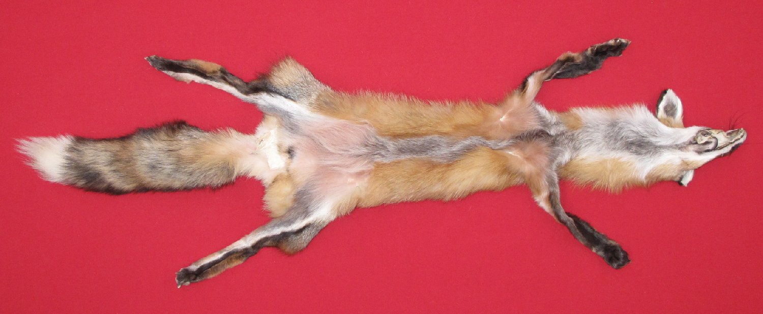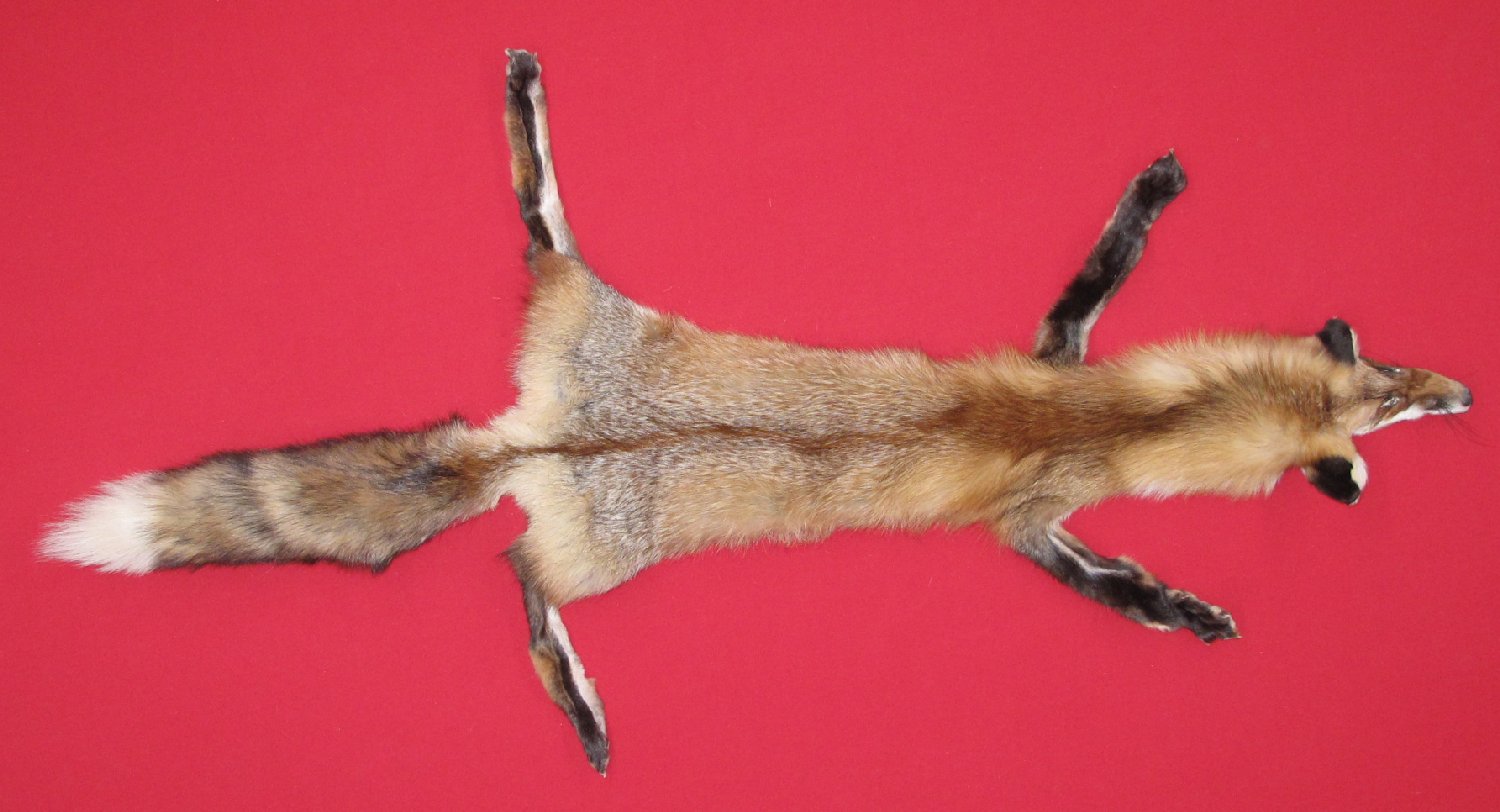 Lot # 6901-0450PennsylvaniaXXL, 33-35" long long plus tail medium bright red color super, super heavy eastern PA type fur cased HAS FEET & CLAWS, ears turned, lips split, etc. #1 select quality. SUITABLE FOR RUG OR LIFE-SIZE. Exceptionally nice skin. Beautiful skin $399.95 /eaFR-112 |