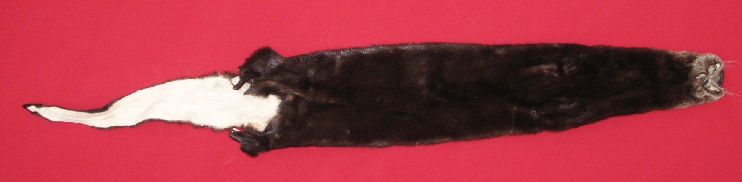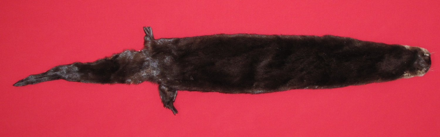 Lot # 7205-2290Canada56" total length, extra wide black color super heavy late winter fur cased as a dried skin, this otter measured over 60" tip to tip. #1 select late winter quality. $149.95 /eaFR-446 |