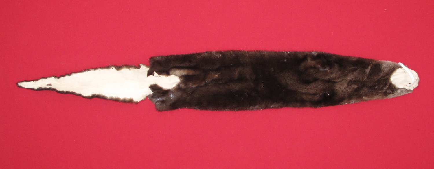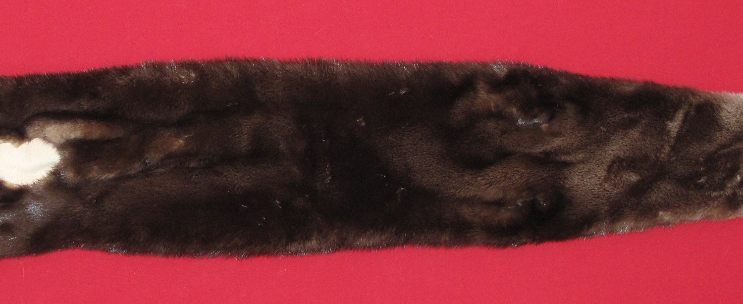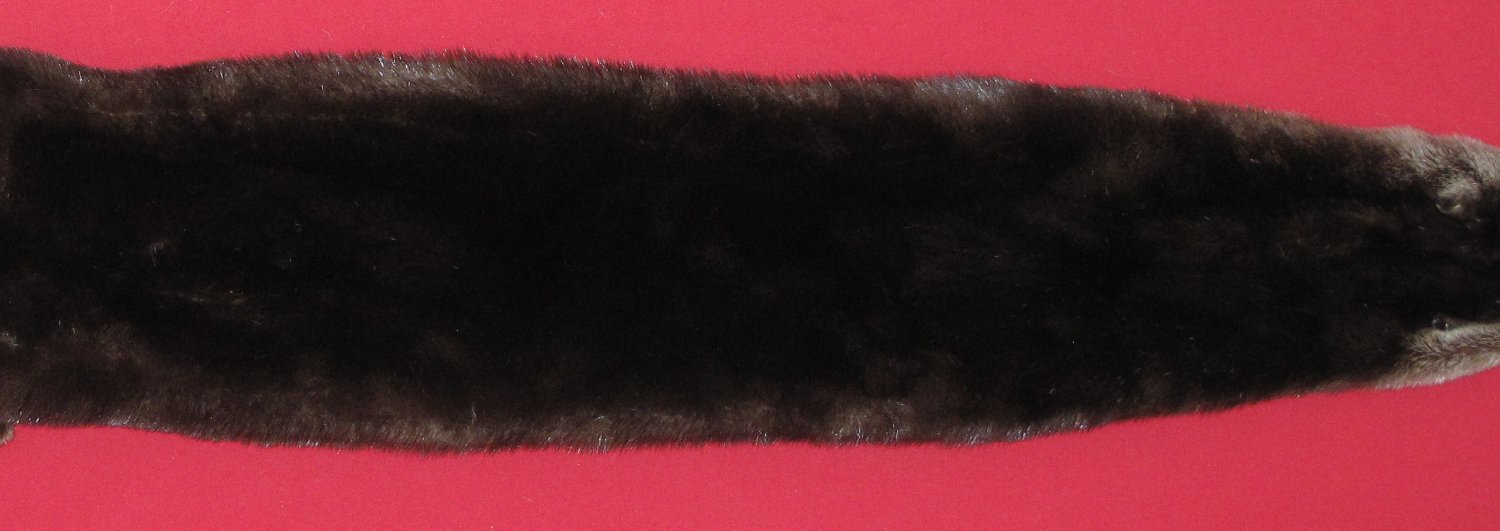 Lot # 7205-2307Georgia52" total length; extra wide skin extra, extra, extra dark color; almost black super, super, super heavy winter fur cased #1 select quality. Exceptionally nice skin. Beautiful. ~1/2" cut near tip of tail $225.00 /eaFR-446 |