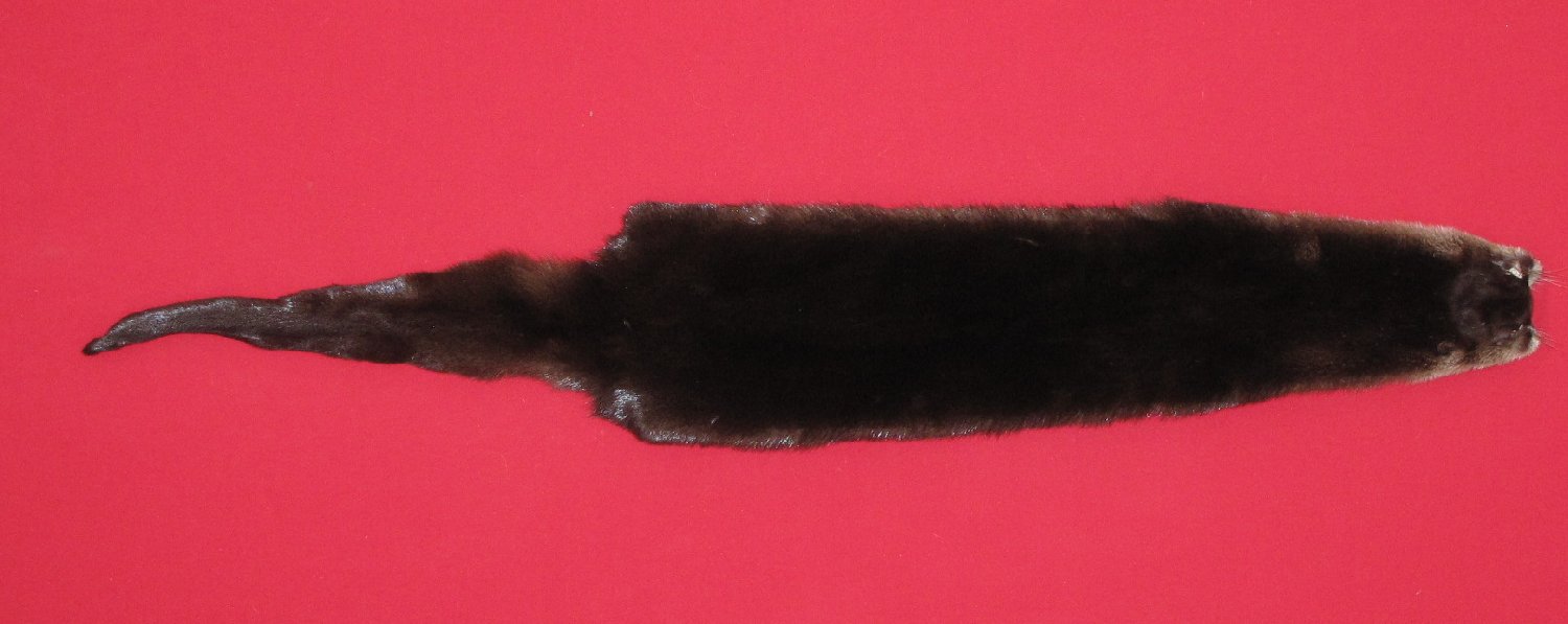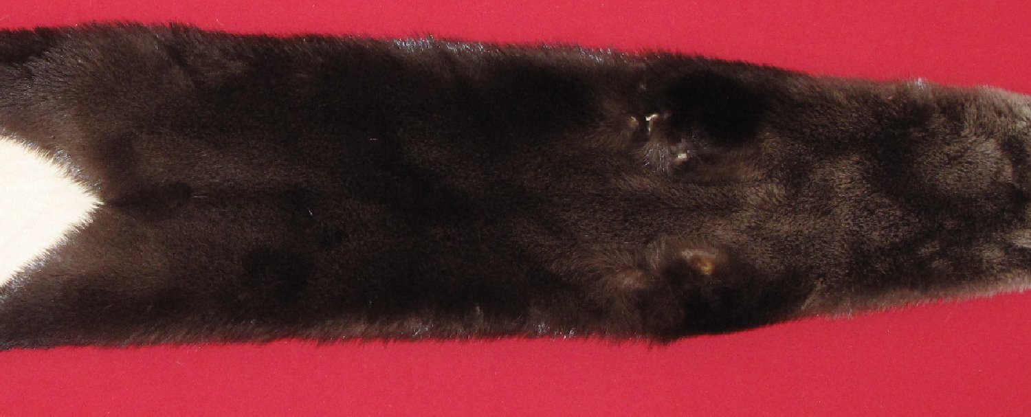 Lot # 7205-2309Canada45" total length black color super, super, super heavy winter fur cased #1 except five cuts up to ~1" long at base of right front legskin; ~1" cut at anterior left base of left front legskin. Two extra small BB size holes in abdomen; ~3.5 x 1" blemish on anterior left side of neck. Beautiful skin $110.00 /eaFR-446 |