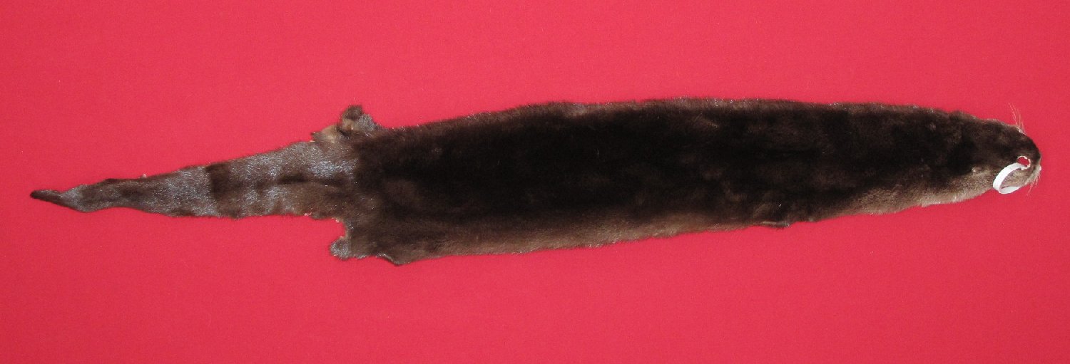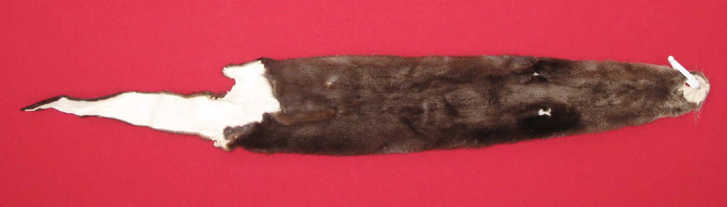 Lot # 7205-2313Illinois53" total length extra dark brown color cased #1 except two dime size and two pea size holes in posterior abdomen (flesher cut off base of teats to make these holes). $149.95 /eaFR-446 |