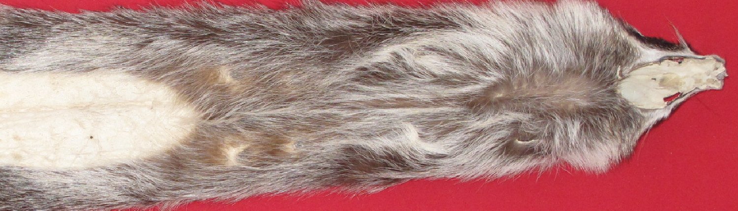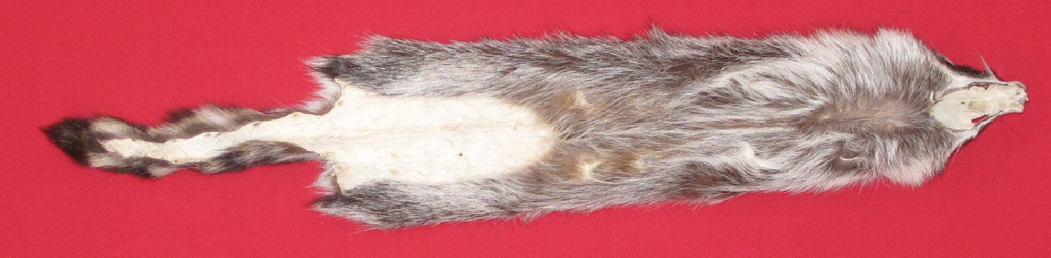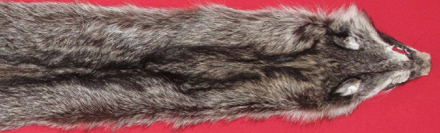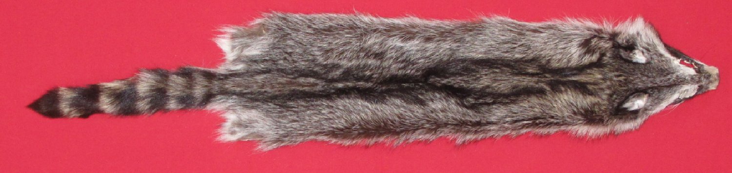 Lot # 7270-2285Southernlarge size, 26-28" long plus tail dark color flattish semi-heavy winter fur cased #1 except leather very slightly damaged. Good fur for projects that require short nap raccoon fur. Adult female that has had young $19.95 /eaFR-541 Quantity Available: