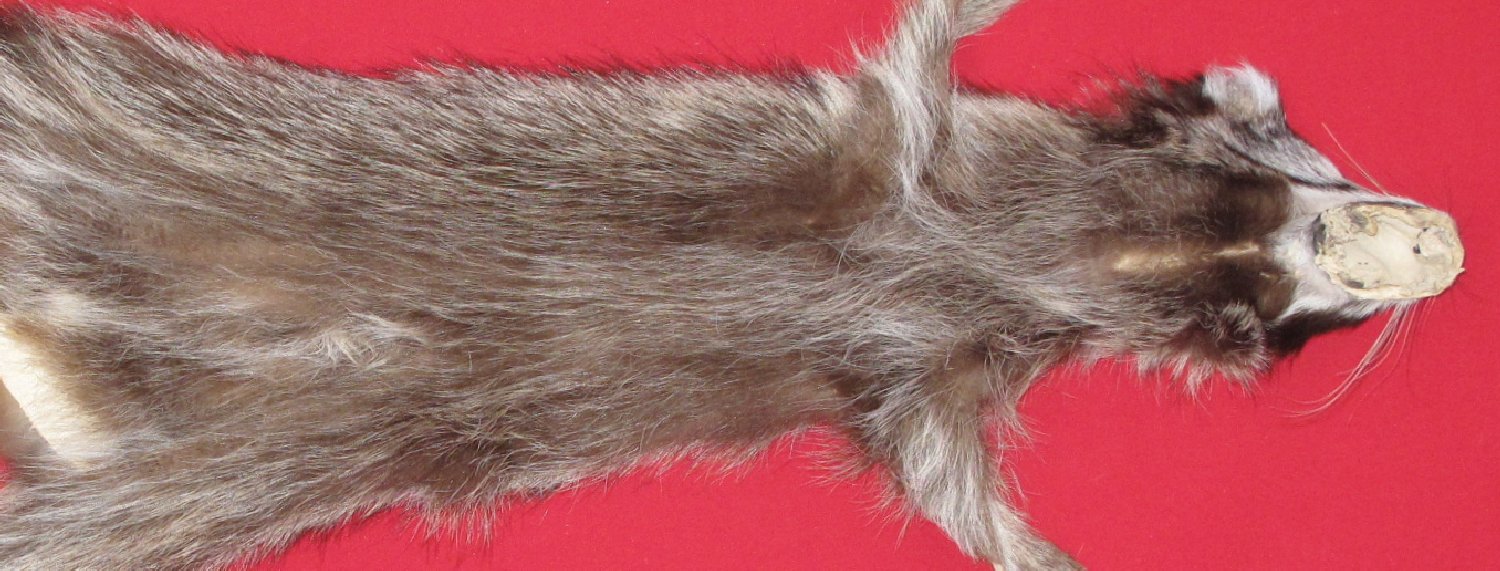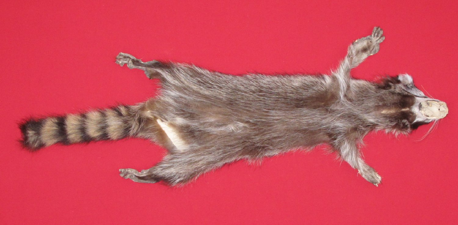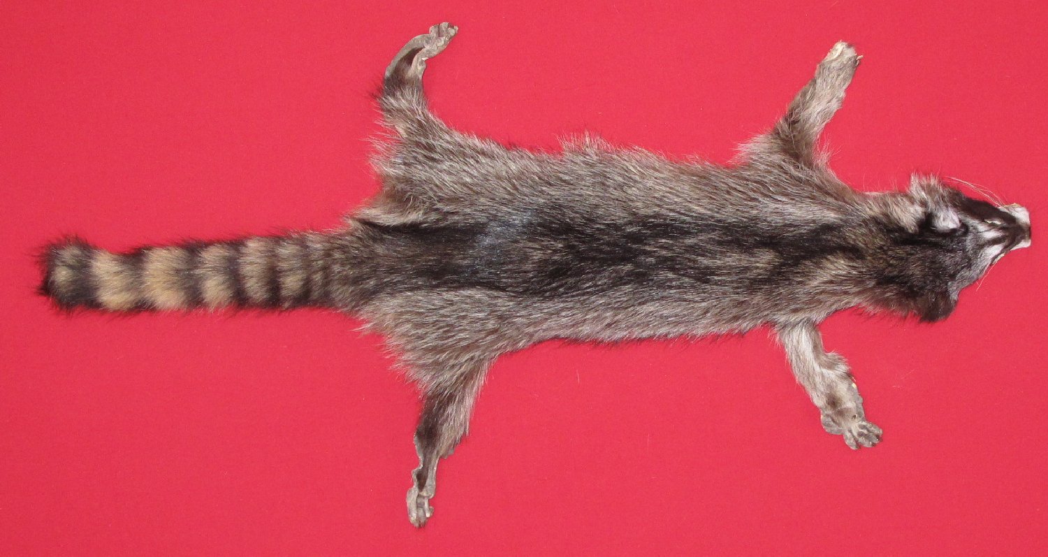 Lot # 7270-2341Idaho, Snake River Valley subspecies. Procyon lotor excelsuslarge size, 26-28" long plus tail extra dark color extra super heavy winter fur cased HAS THREE FEET & CLAWS ( left front foot missing), Ears turned, lips split, etc. #1 select quality.. ~Nice silvery belly. Gorgeous select quality fur. Beautiful skin $99.95 /eaFR-541 Quantity Available:
