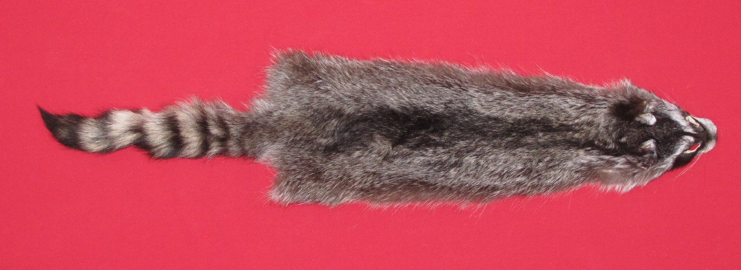 Lot # 7270-2368Western Oregon Willamette Valley, Procyon lotor pacificuslarge size, 26-28" long plus tail extra dark color super heavy winter fur cased #1 select quality. Exceptionally nice fur. Beautiful $82.50 /eaFR-541 |