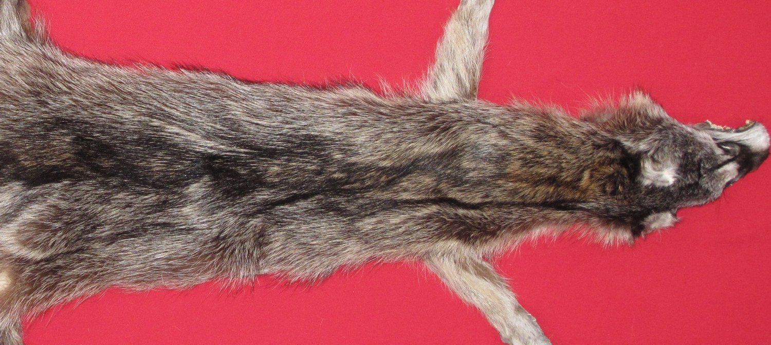 Lot # 7271-0774Idaho. Snake River Valley subspecies. Procyon lotor excelsusXL, 28-30" long plus tail extra dark color extra super heavy winter fur cased HAS FEET & CLAWS, ears turned, lips split, etc. #1 except dime size bare spot on left side of neck; ~1.25 x 1/4" bare area (neck gland) on underside of neck 3/8" cut in underside of neck. Tip of tail weak (replacement tail provided). SUITABLE FOR RUG OR LIFE-SIZE by competent taxidermist. Nice skin. $149.95 /eaFR-531 Quantity Available: