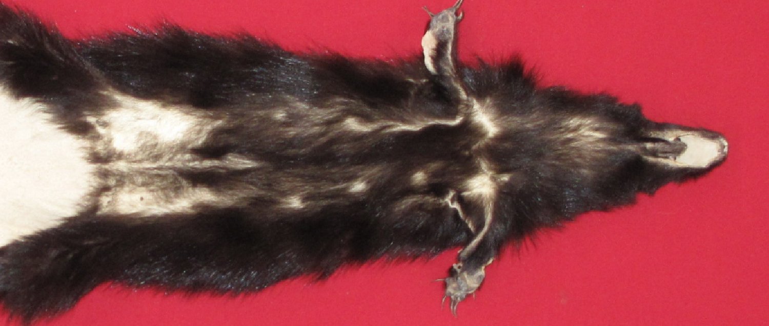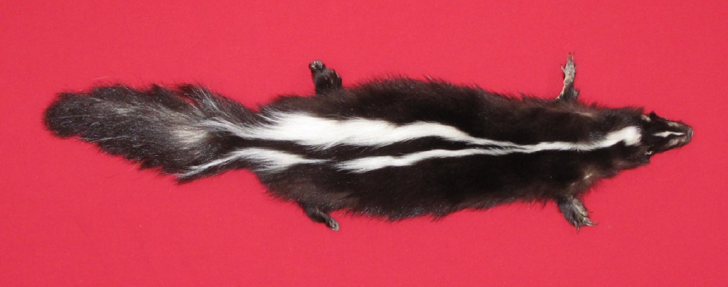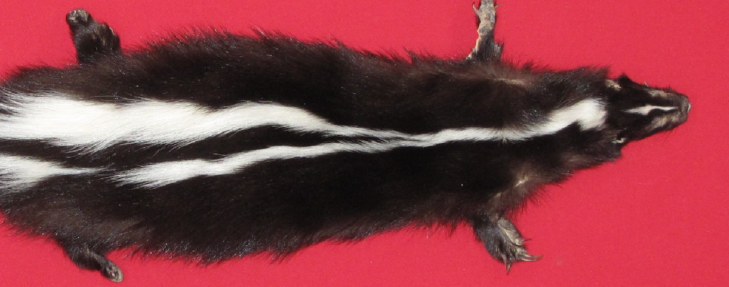 Lot # 7370-1699WesternXXXL, 24-26" long plus tail ordinary bright white stripes extra super heavy winter fur cased HAS FEET & CLAWS. #1 gorgeous select quality fur. Exceptionally nice. Nicely furred adult female $199.95 /eaFR-535 |