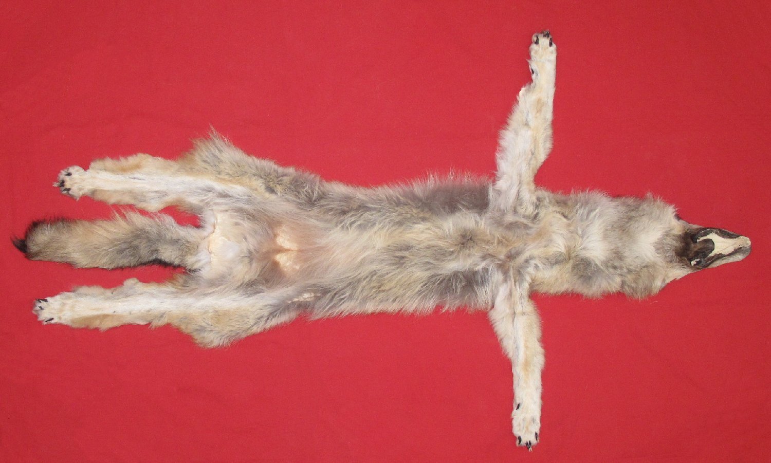 Lot # 7480-2453Northeastern Canada77" total length; NTB = 57" extra light reddish color super soft, super, super heavy winter fur cased HAS FEET & CLAWS, ears turned, lips split, etc. #1 except leather very, very slightly damaged. Fur on sides of neck, outer edges of shoulders slightly weak. Fur on tail very slightly weak. $499.95 /eaBkskn Roo Quantity Available: