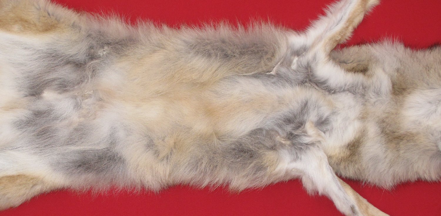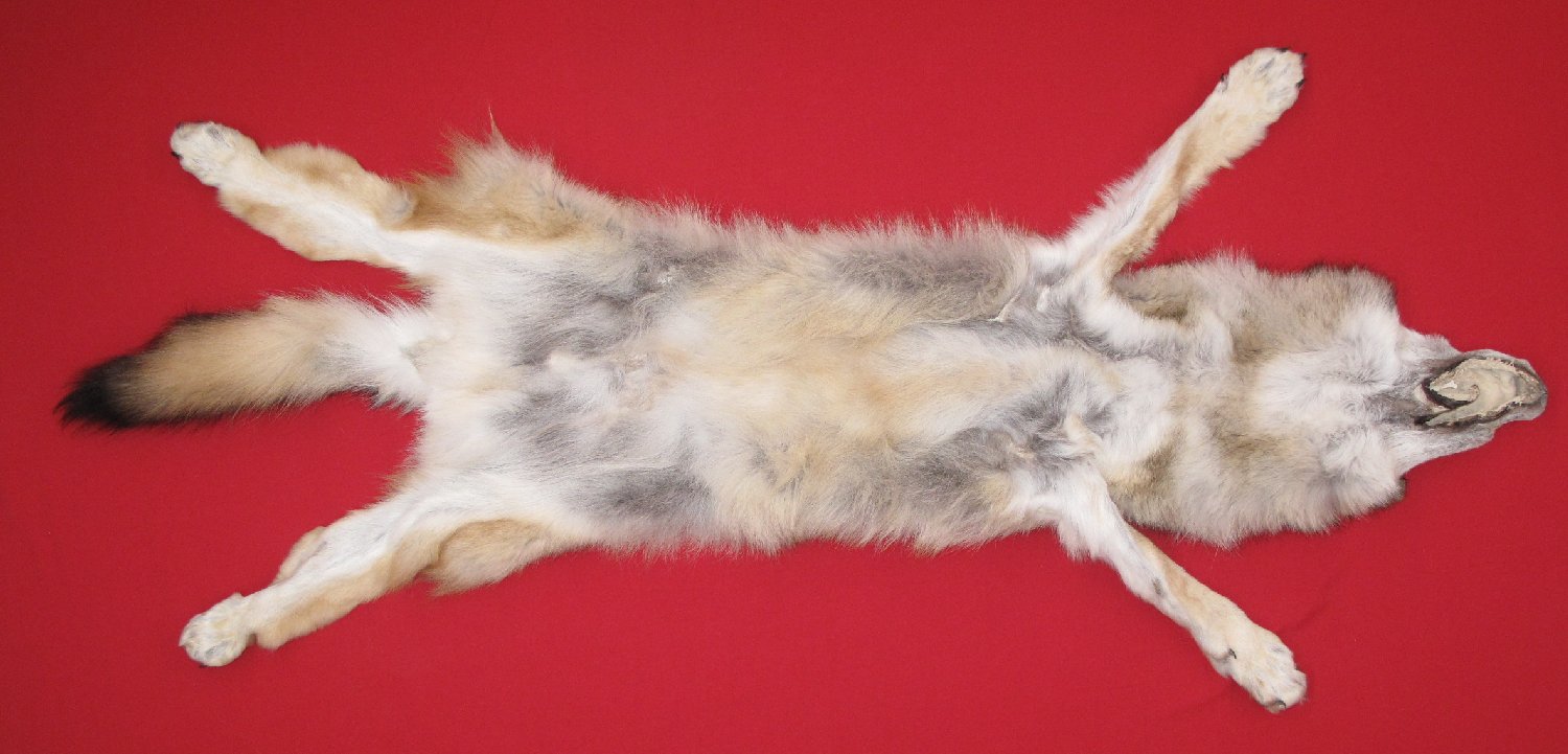 Lot # 7480-2476Eastern Canada COYWOLF68" total length; NTB = 48"; extra wide skin medium light brown color soft, extra super heavy early winter fur cased HAS FEET & CLAWS, ears turned, lips split, etc. #1 except small bare spot in right corner of mouth; ~1" cut in posterior abdomentwo ~3/4" knife cuts in upper left legskin. Male, fur rather thin in ~5x4" area just posterior of penis. Suitable for rug or life-size by competent taxidermist. Gorgeous select quality fur. Beautiful skin. This is one of those COYWOLVES that you see on TV nature shows $599.95 /eaBkskn Room Quantity Available: