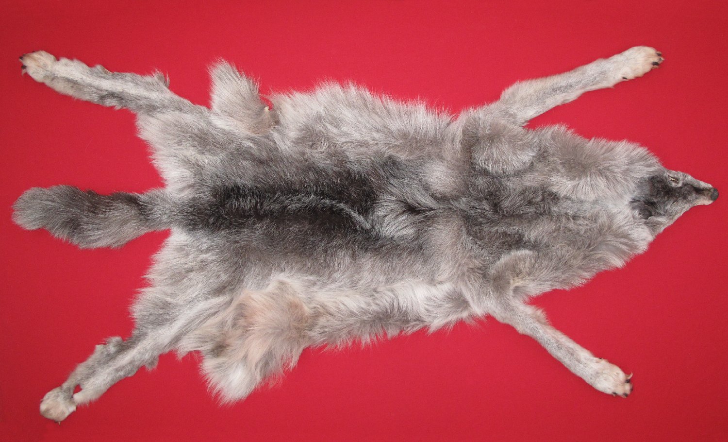 Lot # 7480-2536Canadian Arctic; can be used for rug or life-size by professional taxidermist71" total length; NTB = 53"; extra wide mix of gray and black hairs super, super heavy winter fur abdominal cut HAS FEET & CLAWS, ears turned, lips split, etc #1 except ~3", 15", and 1.5" repairable cuts in underside of neck; ~1.5" and 1.5" cuts in abdomen; ~1.5" cut in left flank; ~2", 1.75" and 1.5" cuts in right side of neck; multiple small knife cuts in leather. This animal was probably skinned frozen or by amatuer skinnner. ~2 x 1/2" area missing from just above right rear foot. Lots of extra small cuts that need to be repaired. Cuts cannot be seen from fur side. EXTREMELY RARE COLOR $1750.00 /ea |