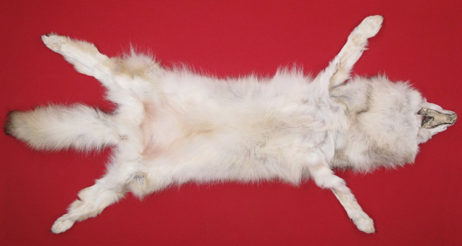 Lot # 7481-0666Canadian Arctic76" total length; NTB = 55"; extra, extra wide extra, extra light pale brown color super super, super heavy winter fur cased HAS FEET & CLAWS, ears turned, lips split, etc. #1 except leather very, very slightly damaged; fur on tail very slightly weak. SUITABLE FOR RUG OR LIFE-SIZE. Gorgeous select quality fur on body of this skin. Exceptionally nice body fur. Extra bright white belly. ~20" across hips $850.00 /ea |