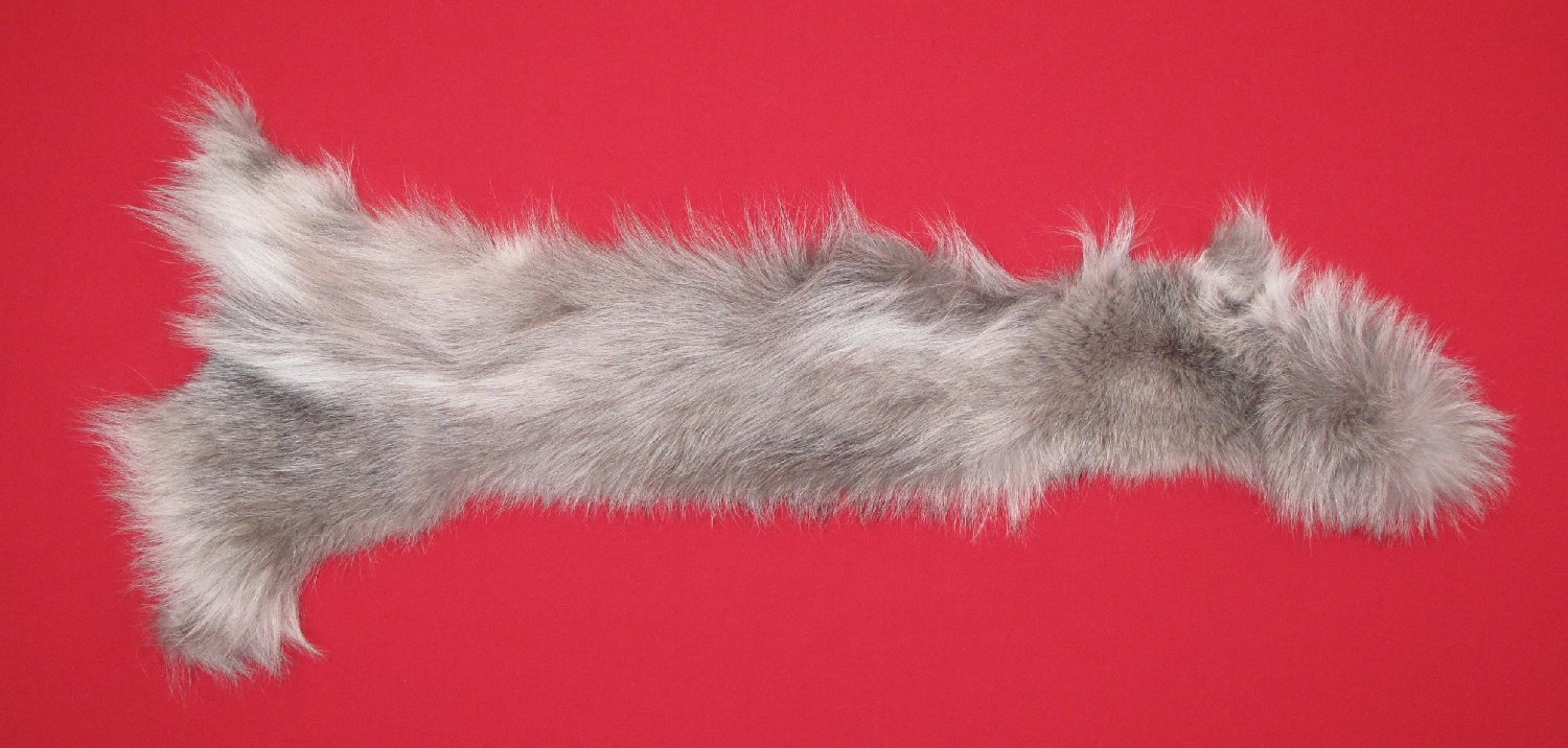 Lot # 7485-1119Canadian Arcticleft abdomen, left side of neck, left hip area mix of gray and silver hairs; 2+ sq. ft. super, super heavy winter fur abdominal cut ~2" to 16" wide, ~46" long. #1 except leather very, very slightly damaged. Exceptionally RARE COLOR. Nice piece for trim. Beautiful fur. $199.95 /eaFR-434 |