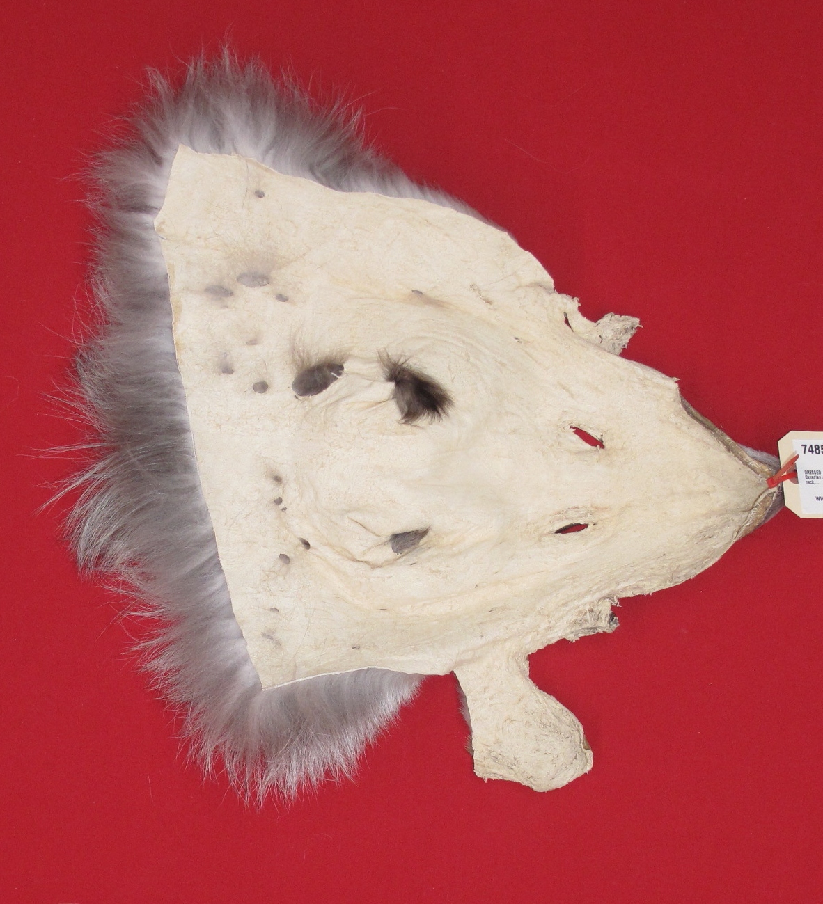 Lot # 7485-1123Canadian Arctic; HEAD, some upper neckwith some neck attached, 17" long from 84" total length skin super super, super heavy winter fur silver, black, gray hairs abdominal cut to left corner of lower lip. EARS TURNED, lips split, etc. Head #1 select quality; several small cuts in leather in upper neck (posterior of head). Exceptionally nice, Beautiful $299.95 /eaCFR |