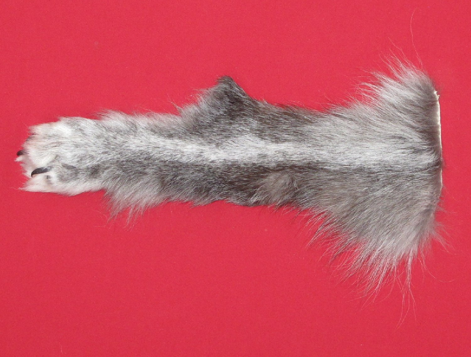 Lot # 7485-1126Canadian Arctic; rear legskin with claws18" long mix of silver, black, gray color super, super heavy winter fur cut along back of leg #1 except leather very slightly damaged. Gorgeous select quality fur. Exceptionally nice. Very few legskins that are more beautiful $150.00 /eaFR-434 |