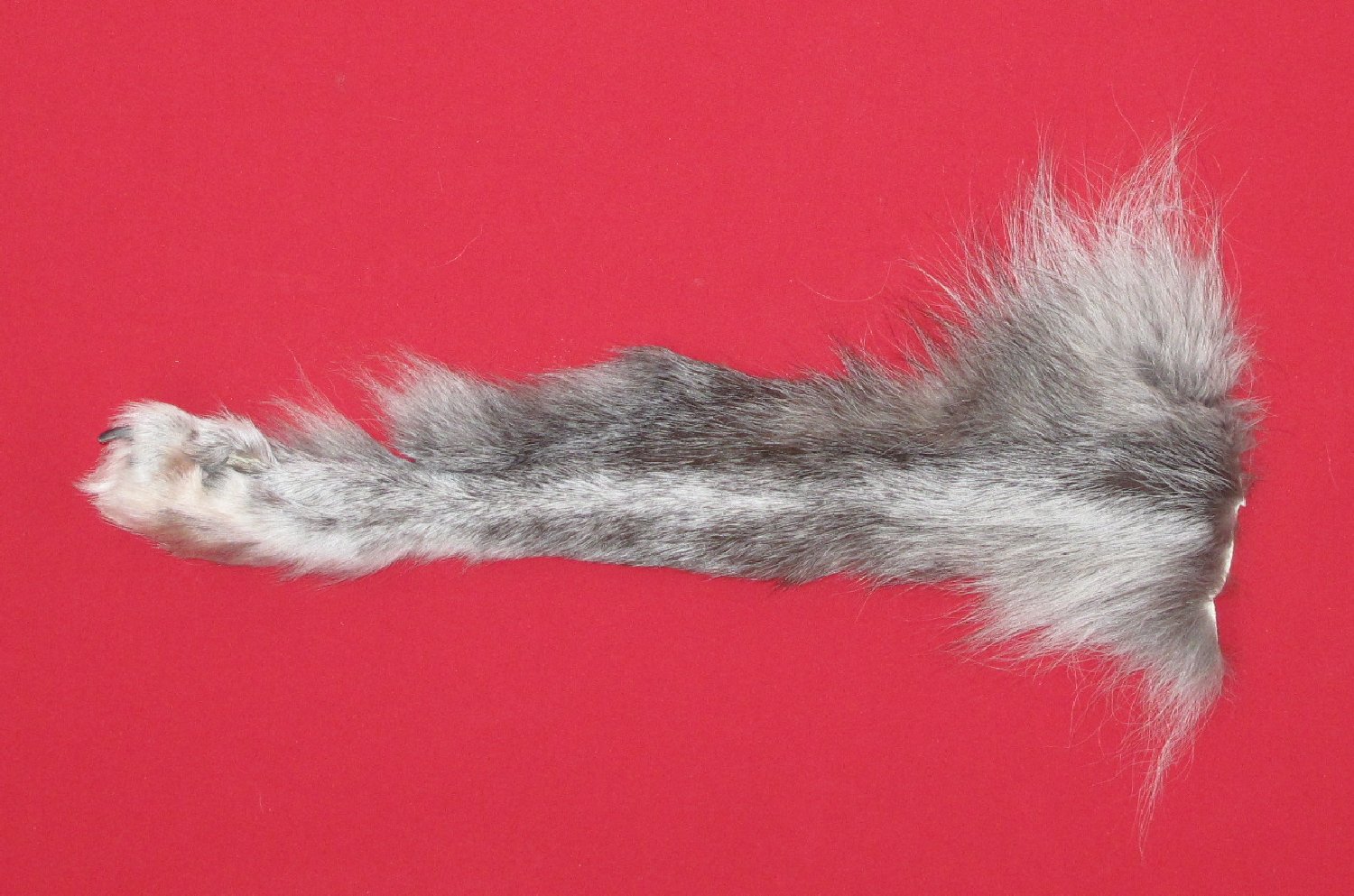 Lot # 7485-1127Canadian Arctic; rear legskin with claws21" long mix of silver, black, gray color super, super heavy winter fur cut along back of leg #1 except leather slightly damaged. Gorgeous select quality fur. Exceptionally nice. Very few legskins that are more beautiful $115.00 /eaFR-434 |