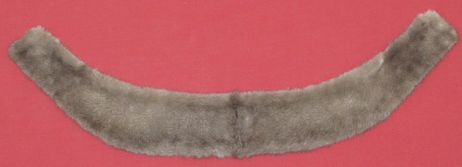 Lot # 7865-0311RANCH MINK; collar28" long; 2.5-3.5" wide dark gray color extra heavy winter fur crescent shape #1 except shows very slightly amount of wear (probably not noticeable to untrained eye). $12.50 /eaBkskn Room Quantity Available: